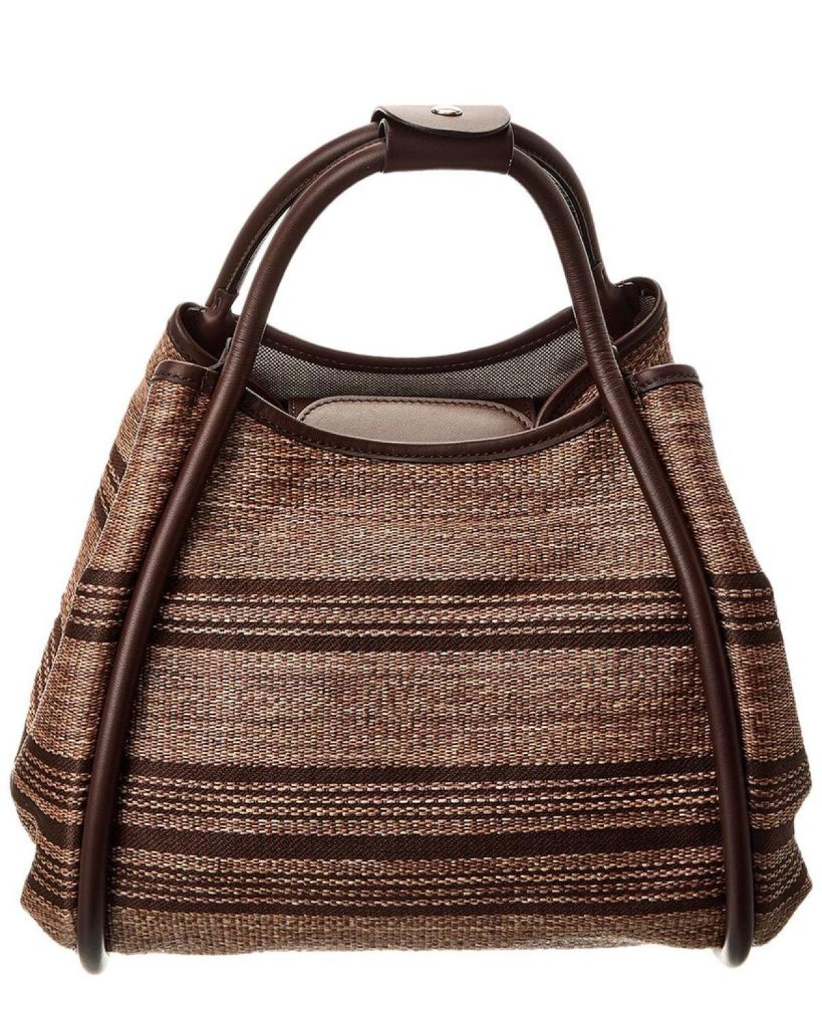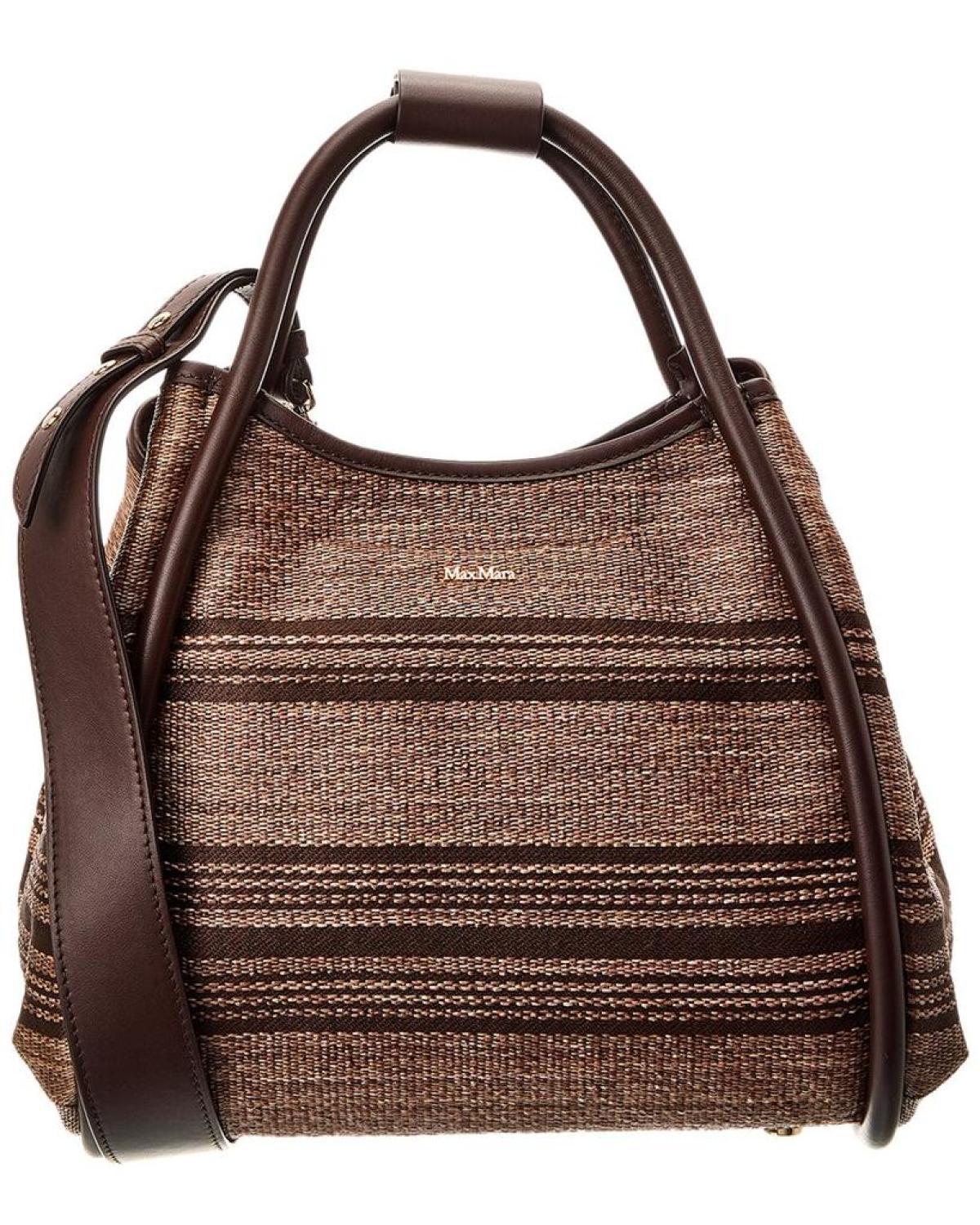 • Introducing the Max Mara Marine Leather-Trim Tote, a luxurious and stylish addition to any woman's handbag collection. This stunning tote features a brown woven fabric and leather construction with gold-tone hardware and a subtle logo accent, showcasing the impeccable craftsmanship synonymous with the Max Mara brand. The interior of the tote is designed with practicality in mind, featuring a canvas lining, zippered pocket, and open wall pocket to keep your essentials organized. Measuring 12.5 inches wide, 10 inches high, and 7.5 inches deep, this tote offers plenty of space for all your daily necessities. Carry it effortlessly with the top handles with a 5-inch drop, or use the adjustable and removable shoulder strap with a 23-inch drop for added convenience. The tote is secured with a magnetic closure and includes protective feet at the bottom to keep it looking pristine. Made in Italy, this Max Mara tote is the epitome of sophistication and elegance. Please note that all measurements were taken by hand and are approximate, with slight variations possible. Elevate your look with the Max Mara Marine Leather-Trim Tote and experience the timeless allure of Italian luxury.