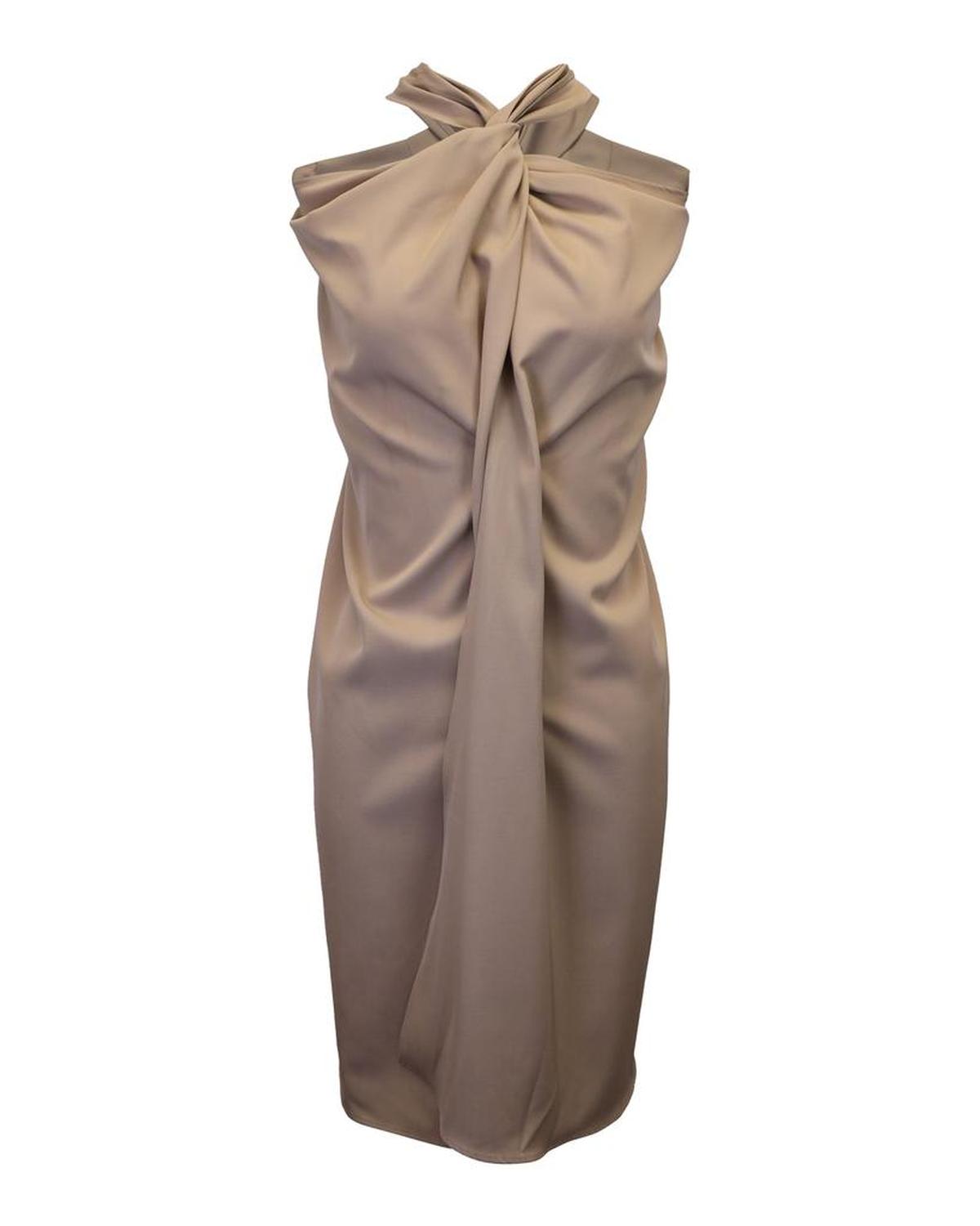 The dress would feature a halter neck design leaving the shoulders and back exposed. The twisted detail would add a unique and fashionable touch to the neckline, creating visual interest and enhancing the overall design.Max Mara Twisted Halter Dress in Beige WoolCondition - excellentMaterial - Wool/Hair | Lana vergineSize - EU36Sign of wear - NoSKU - 361331