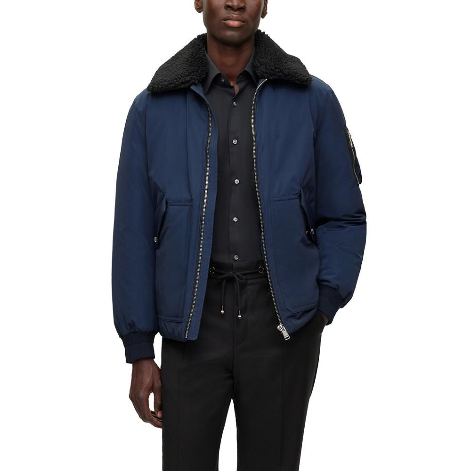 • A water-repellent jacket by BOSS Menswear, designed with a zipped closure and topped with a faux-fur collar.