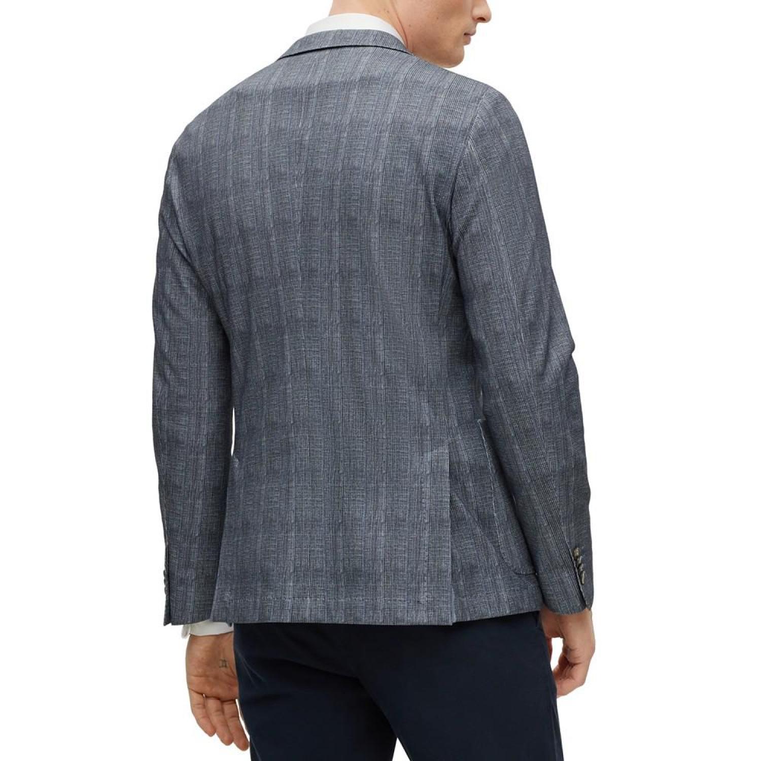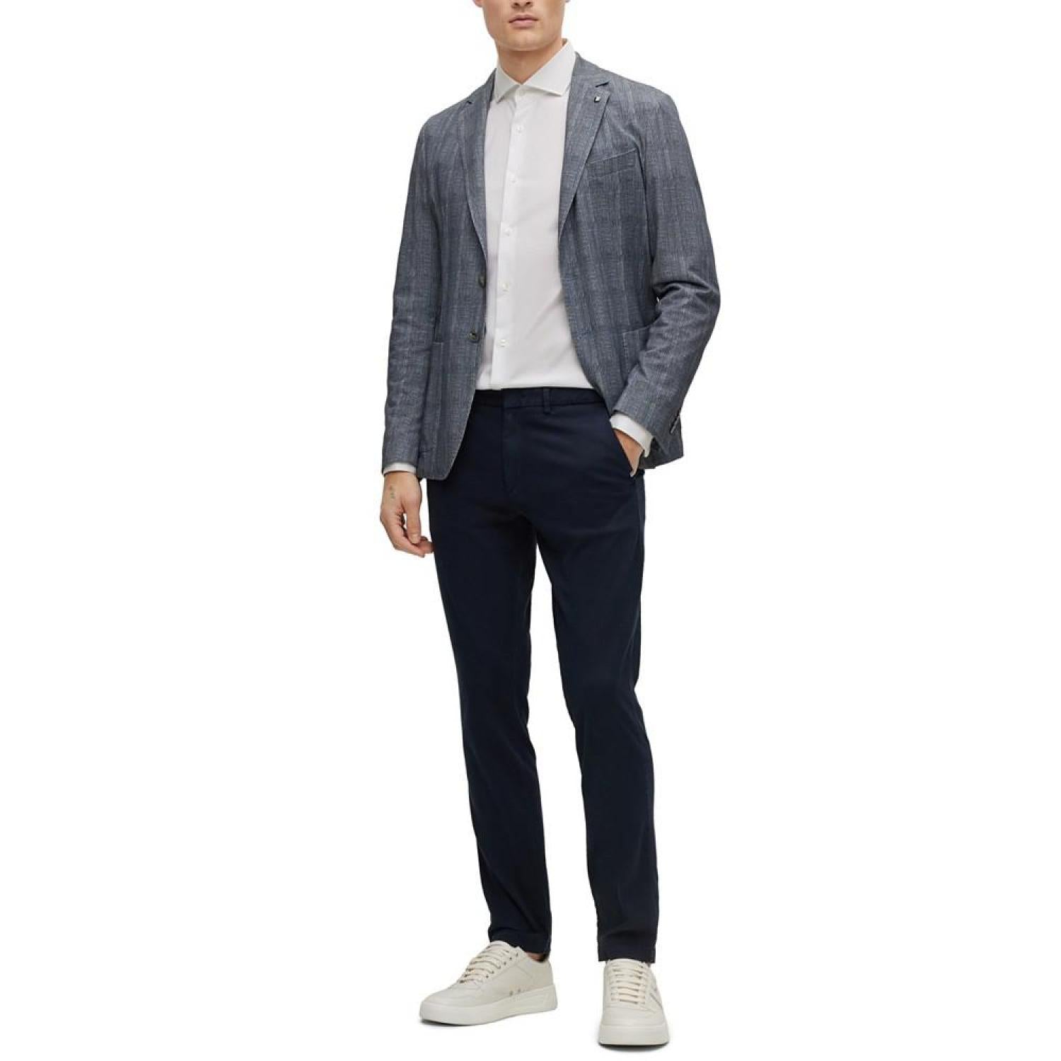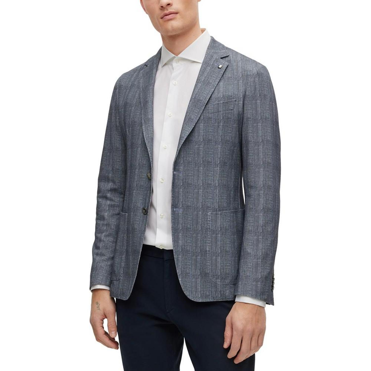 A slim-fitting jacket in checked stretch cotton with a signature-stripe lapel pin by BOSS Menswear. Fastening top- Button closure Number of buttons- 2 Welt chest pockets Pockets top- patch pockets The model is a size 32R and is 6'2" tall with a, 38" chest, 29" waist and 36" hips Cotton, Elastane Machine Washable Imported