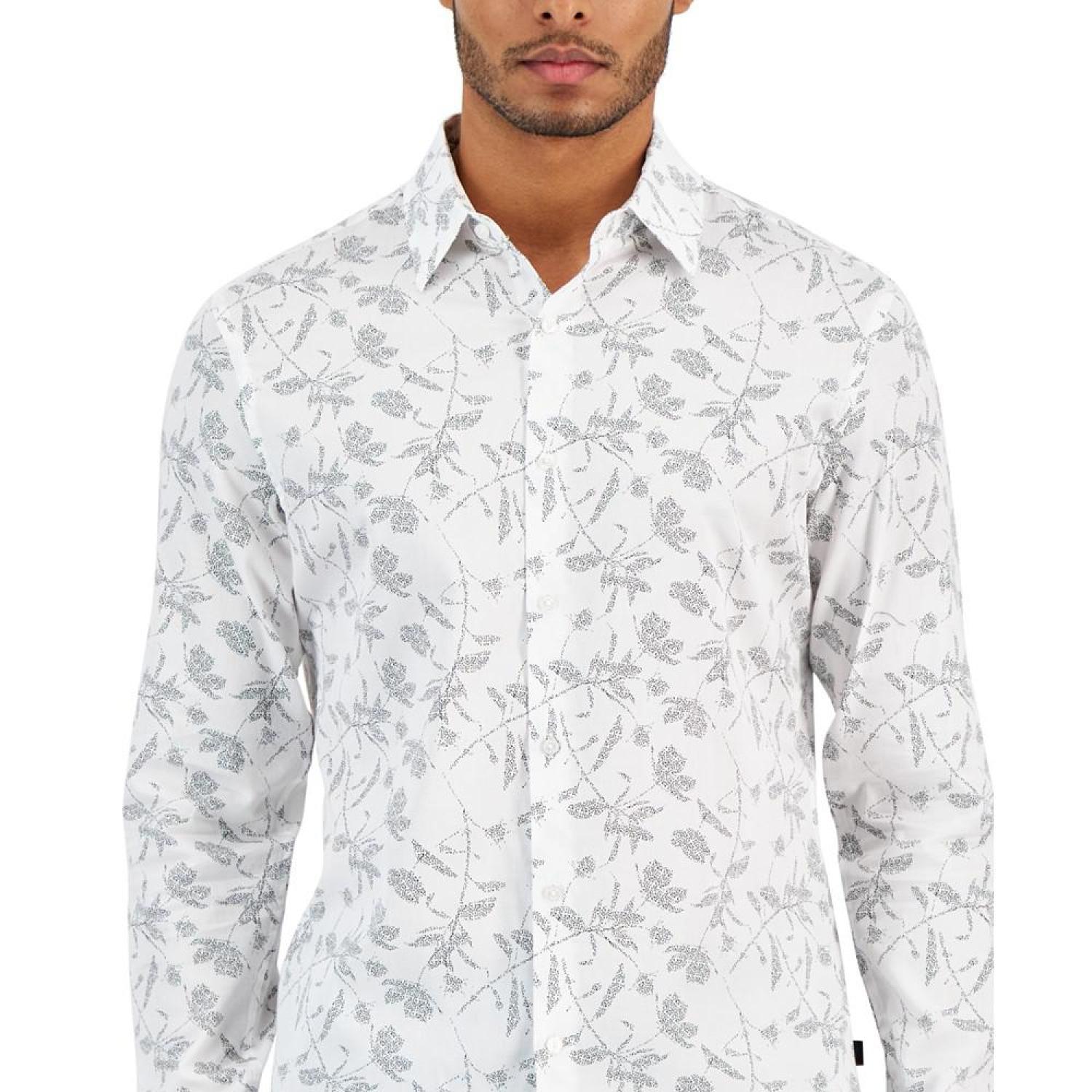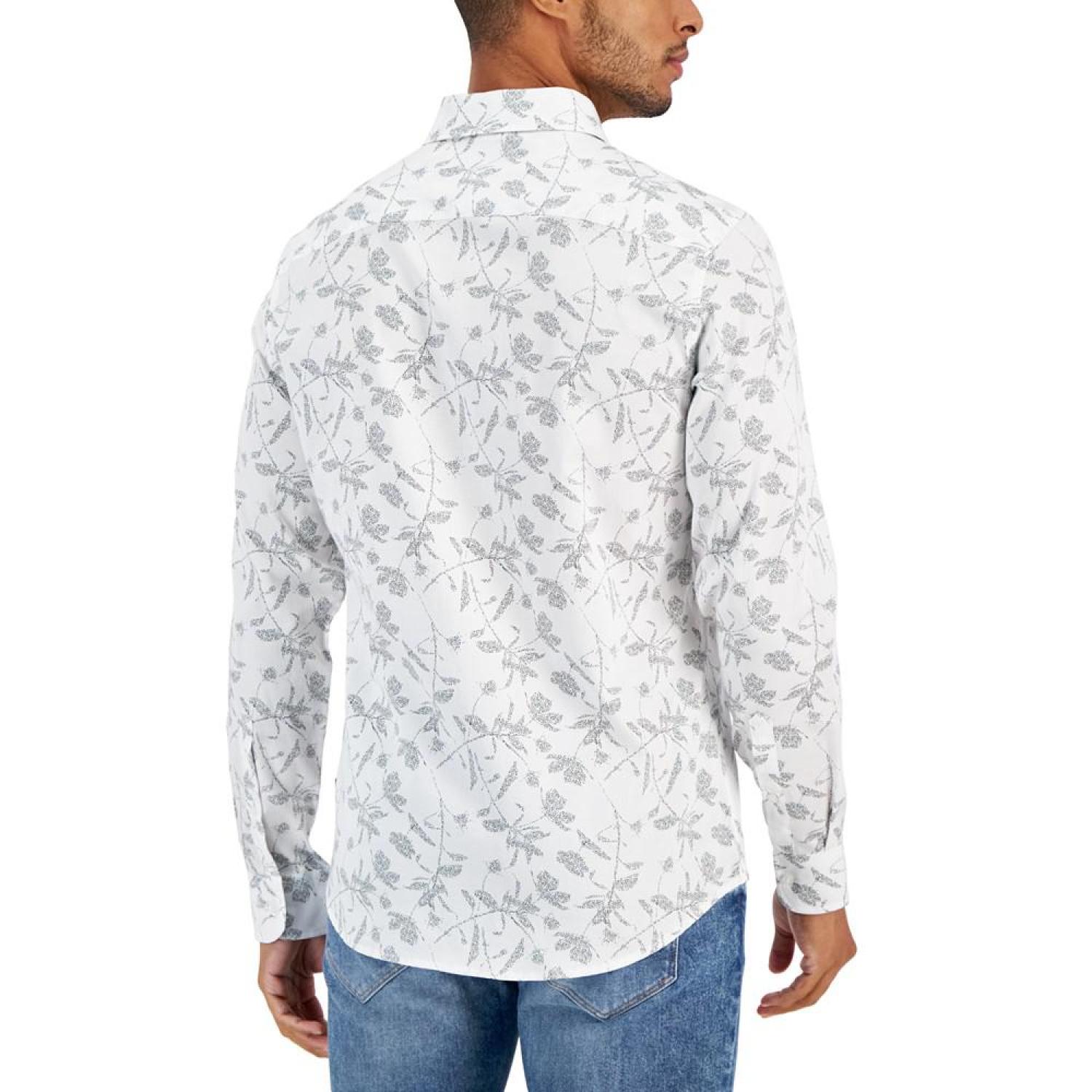 Men's Slim-Fit Stretch Dotted Botanical-Print Button-Down Shirt