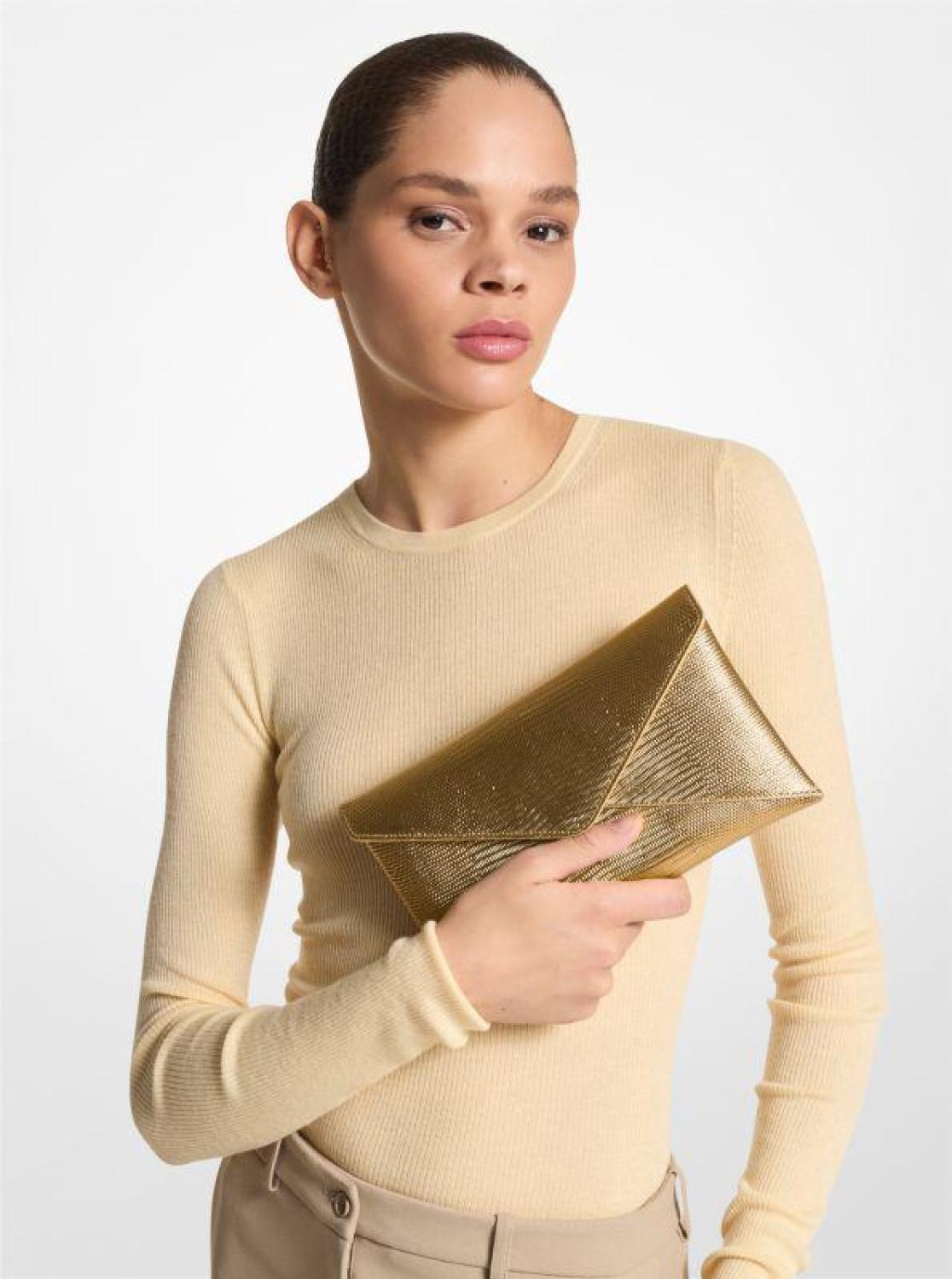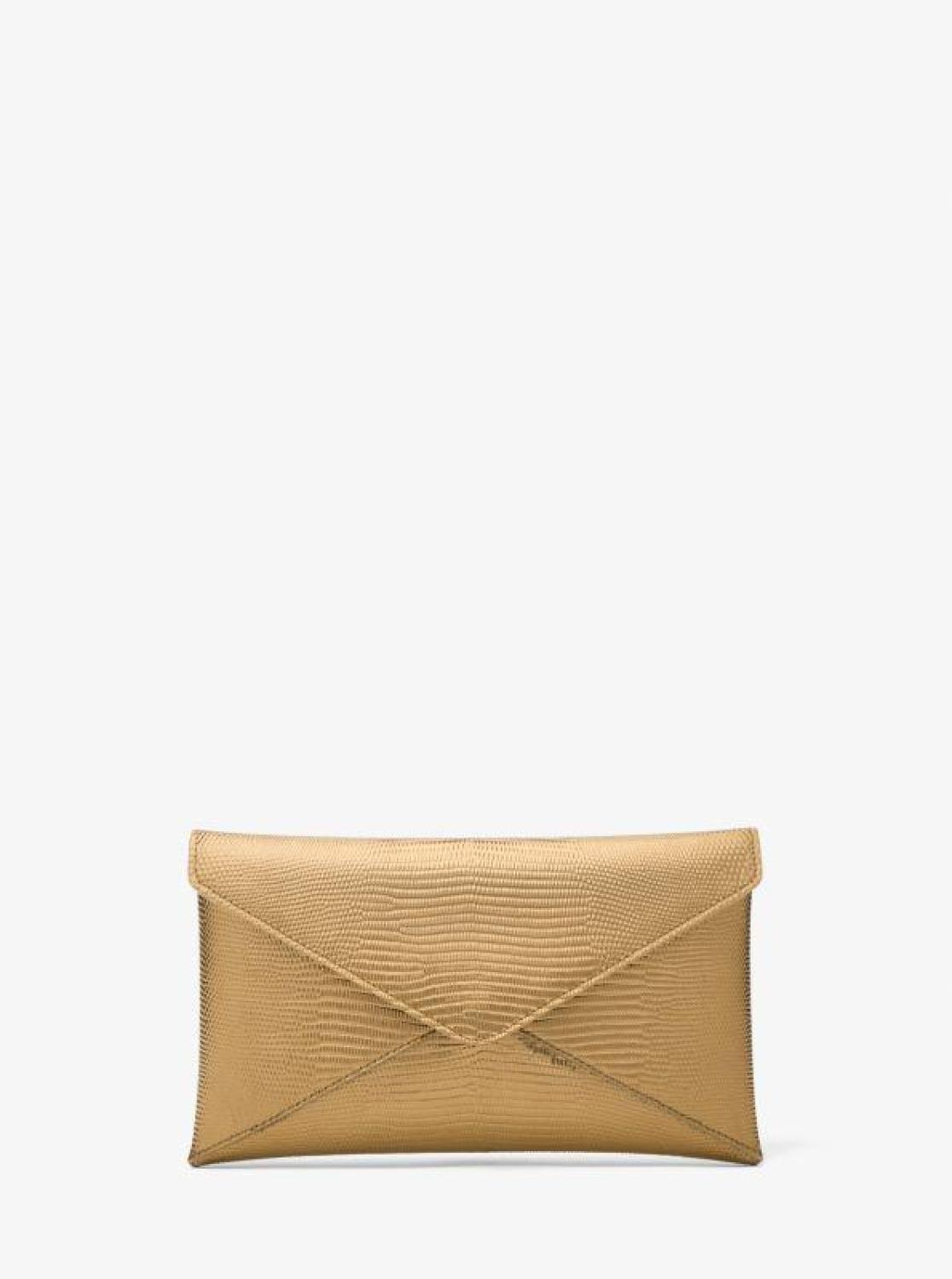 Mia Metallic Lizard Embossed Leather Envelope Clutch