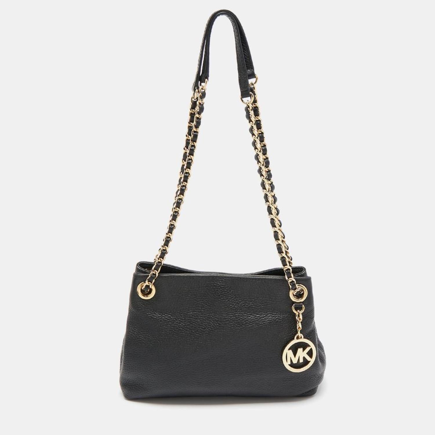 Michael Kors Black Pebbled Leather Chain Shoulder Bag
