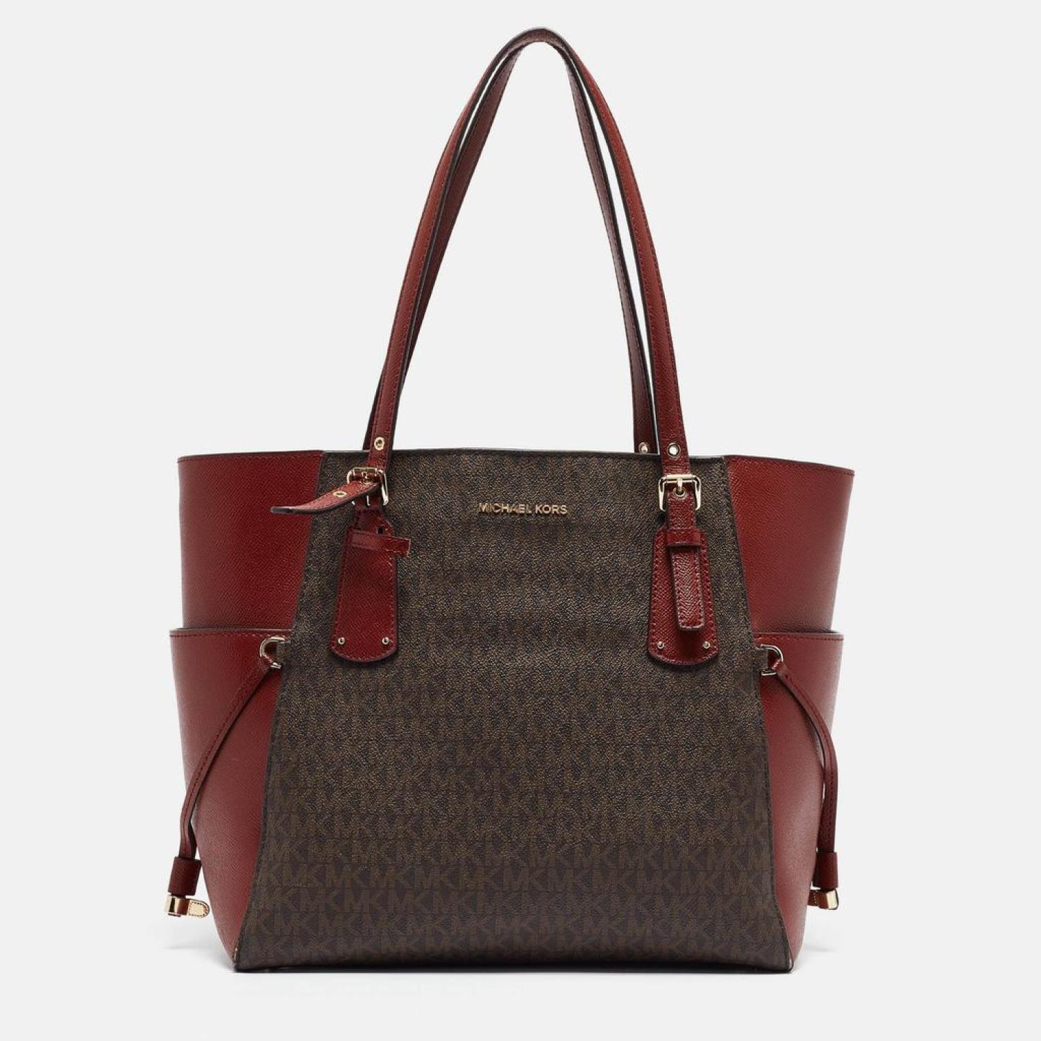 Michael Kors /brown Signature Coated Canvas And Leather Voyager East West Tote