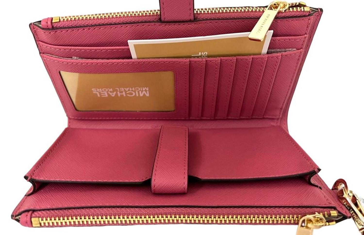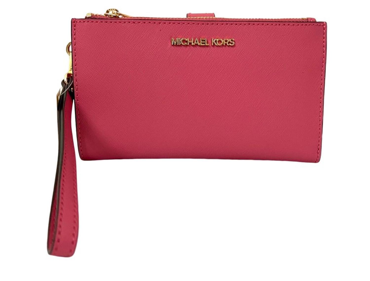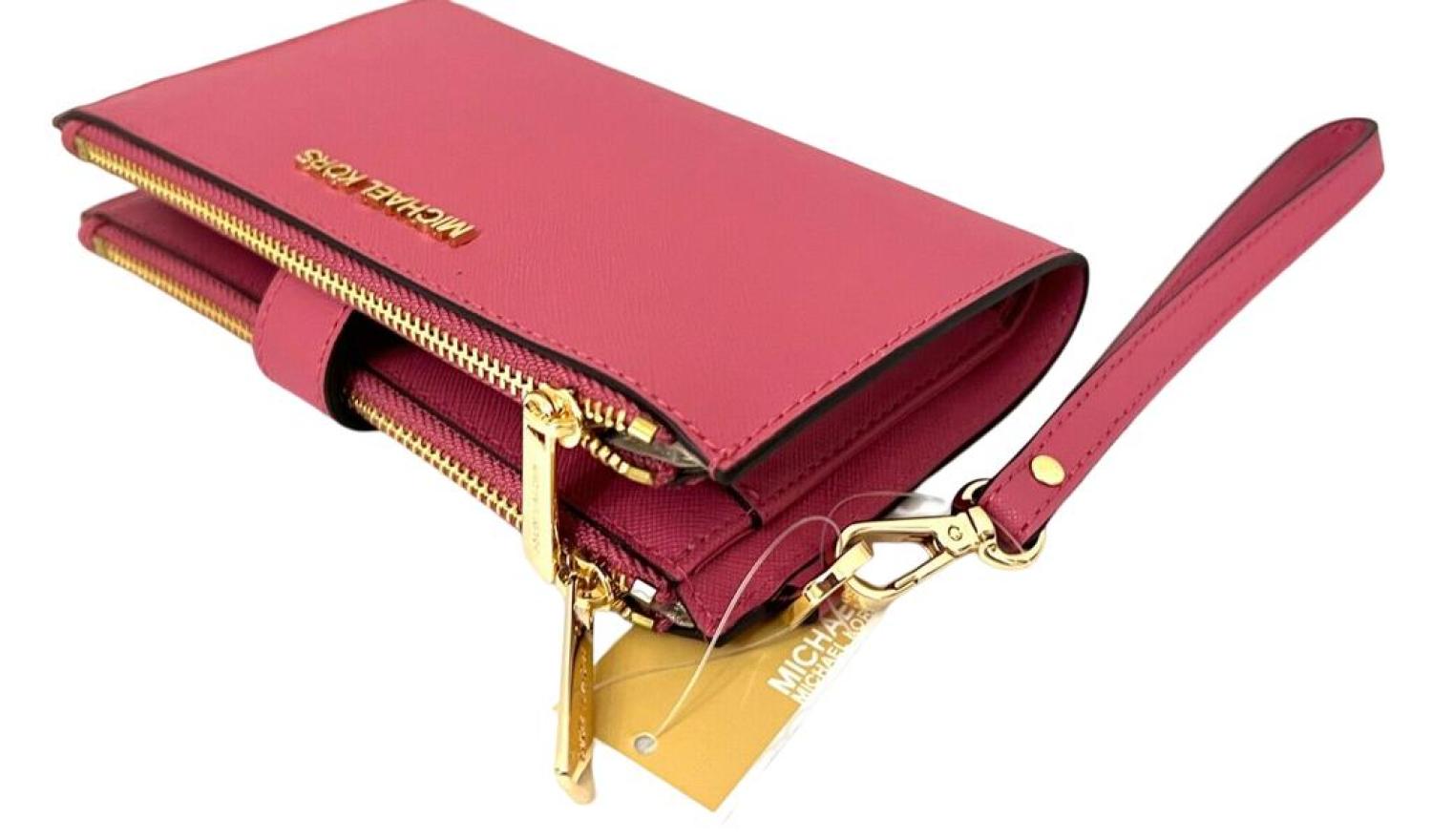 Michael Kors Jet Set Large Double Zip Leather Wristlet Wallet