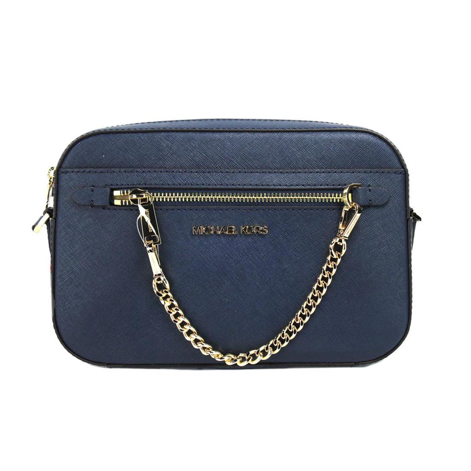 • Style - Michael Kors Jet Set Large East West Zip Chain Crossbody Handbag (Navy)Material - Saffiano LeatherFeatures - 1 Outer Zip Pocket with Chain Zipper Accent, 2 Outer Slip Pockets, 2 Inner Slip Pockets, Adjustable Crossbody StrapMeasures - 25.4 cm W x 15.24 cm H x 6.35 cm D