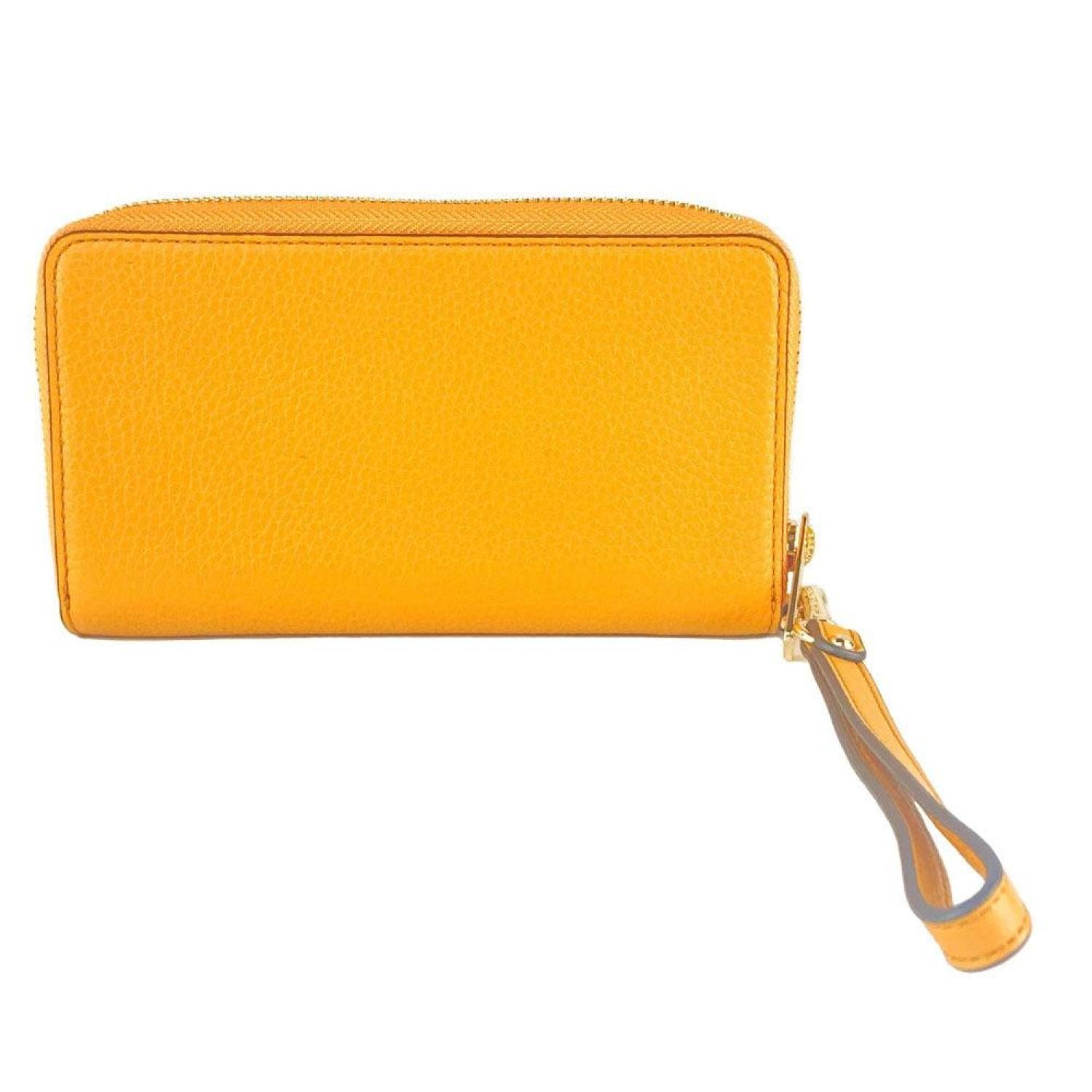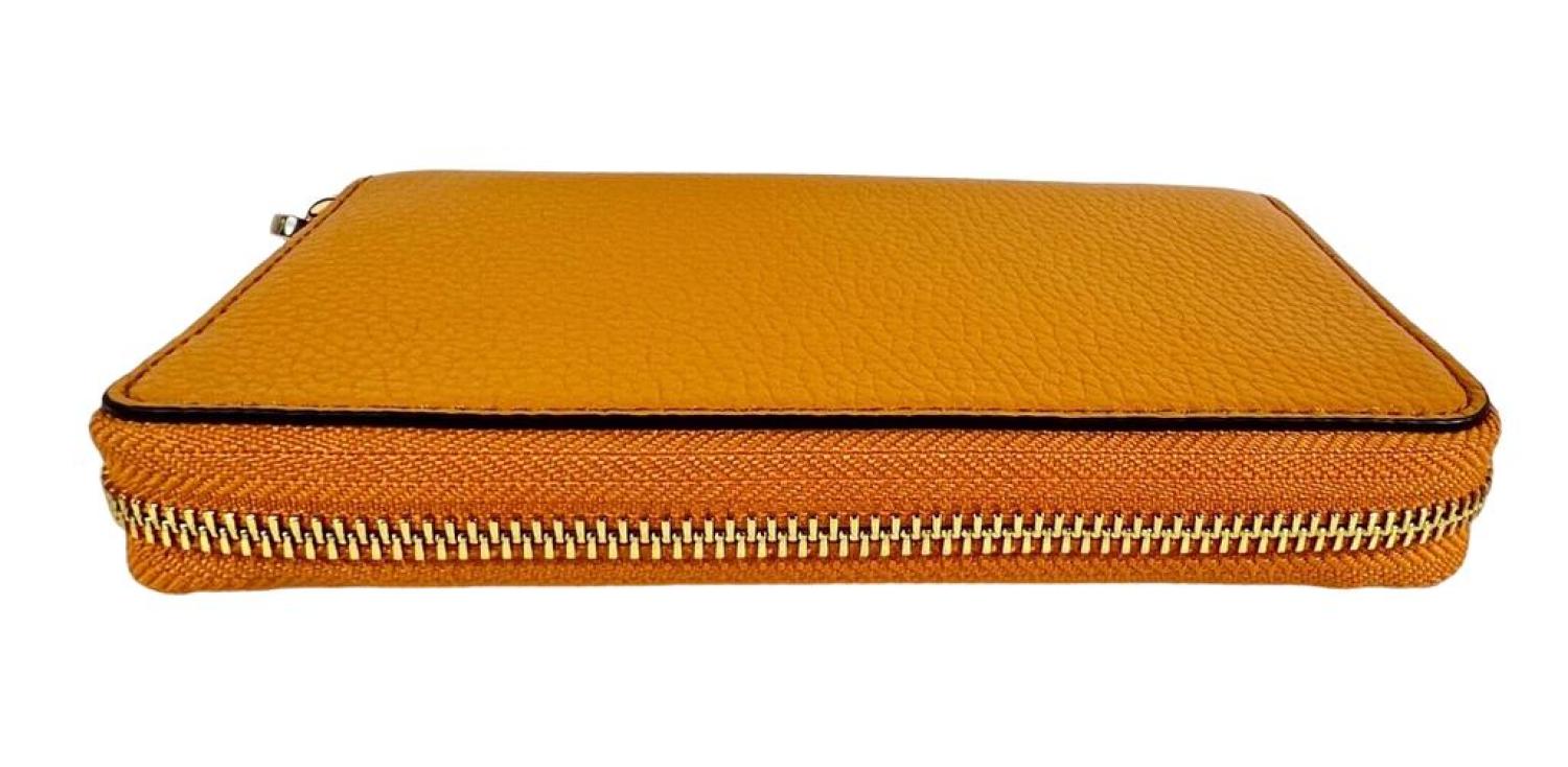 Made of Pebbled or Saffiano leather with logo detail on front, Zip around for closure, One ID slot, Five credit card slots, One slide pocket. Iphone slot, Full leather lining, 7 inches removable leather wristlet strap. Gold hardware, Style - Phonecase wristlet. Measurements - Length - 7 x Height - 4 x Width - 1 Inches. Comes with original tags.