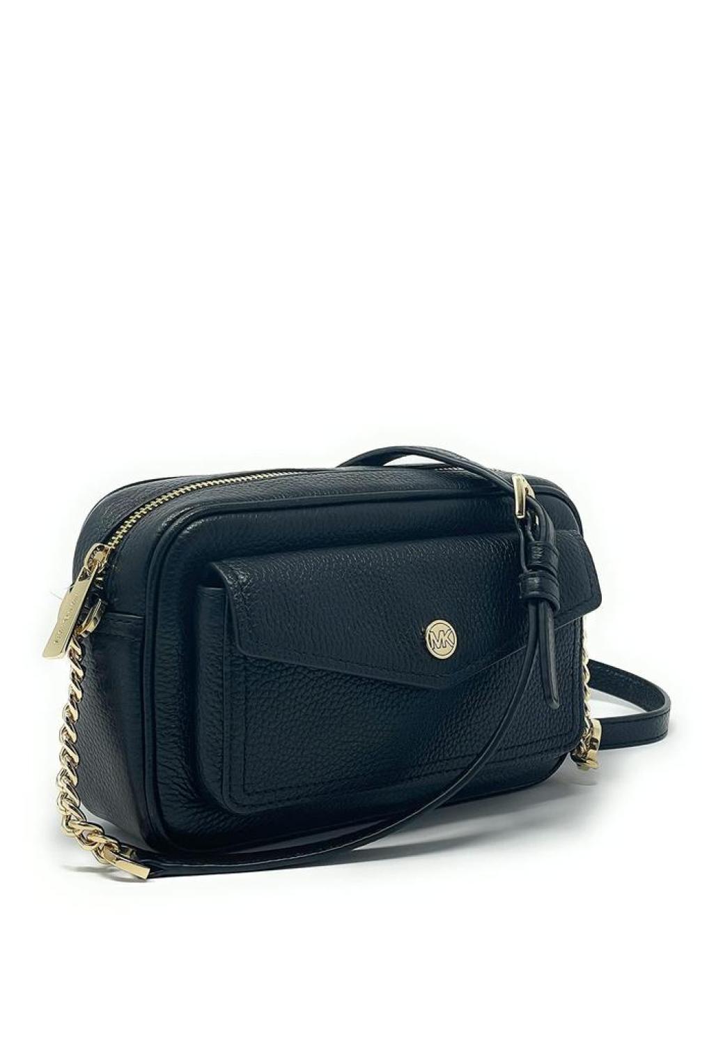Made of Pebbled leather, Make the move on a poised new look with the Michael Kors leather Crossbody, Top zip for closure. Signature logo hardware detail at front, Lined interior, Front snap pocket, Interior two slip pocket. Strap Length - 41.5In Strap Drop - 13In, Approximately Weight - 10.8 oz. Measurements - Length - 8 x Height - 4.5 x Width - 2.5 Inches. Comes with original tags.