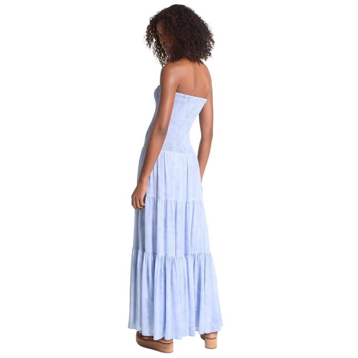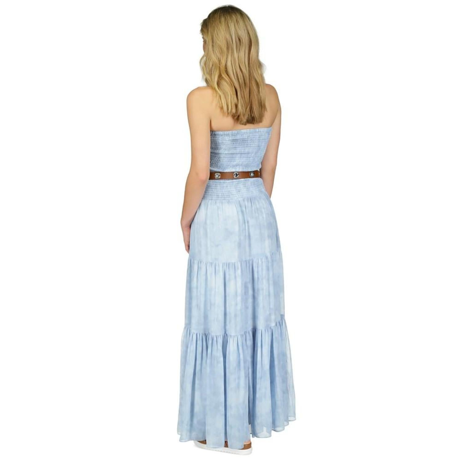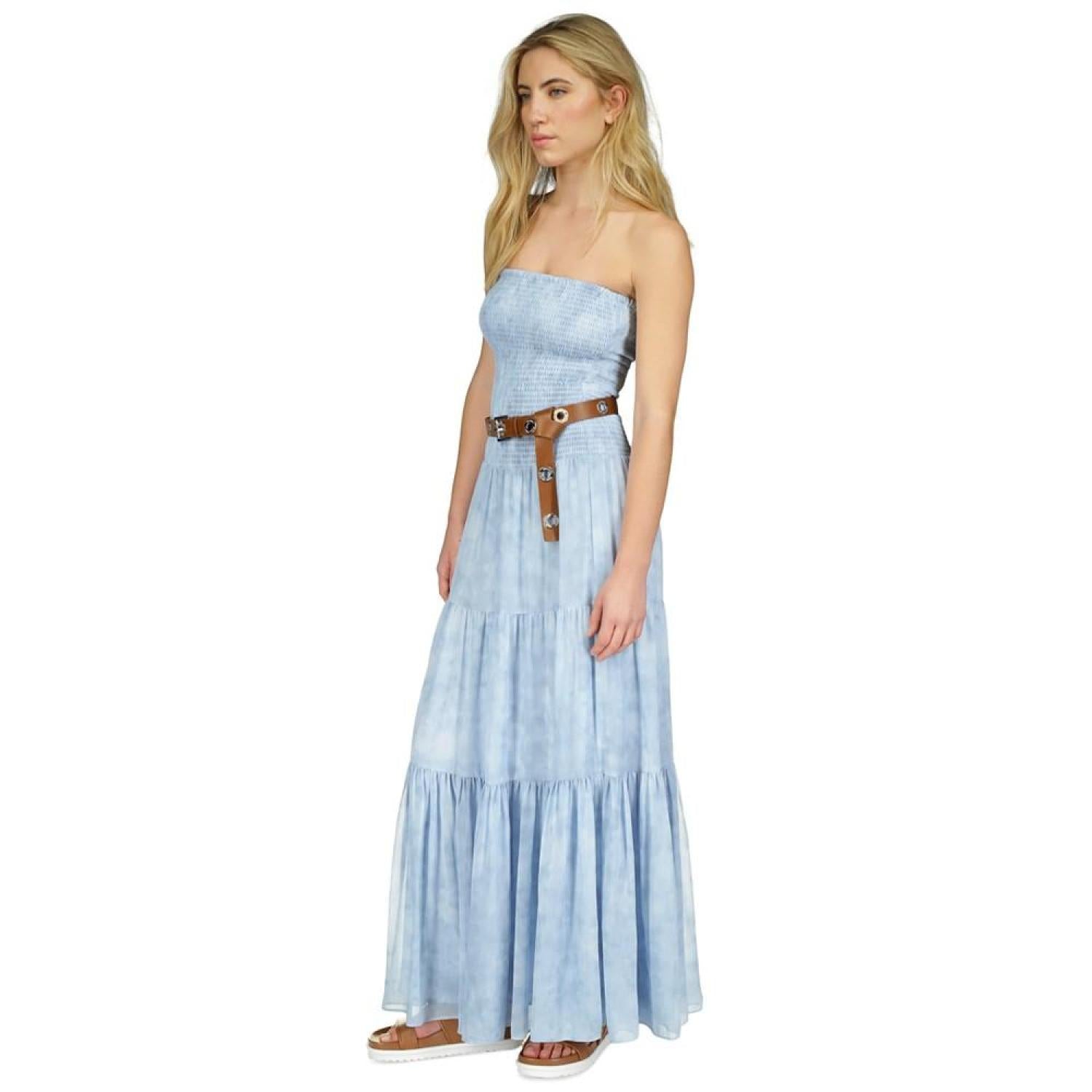 • A smocked bodice lends a fitted silhouette to this flawless maxi dress by Michael Kors, a chic belt perfectly defines the waist which flows onto a tiered skirt.