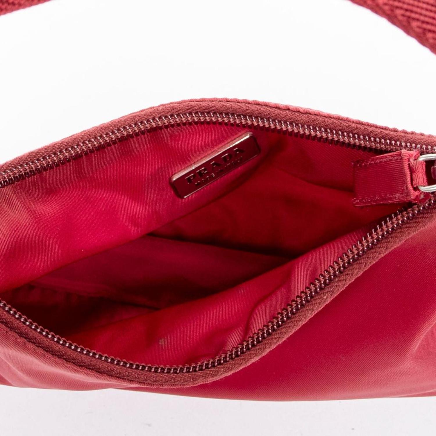 • Prada Shoulder Bag in Red Nylon Canvas and Silver hardware. Dimensions - 20*16*7cm. Serial number - N/A. Inclusions - None.
