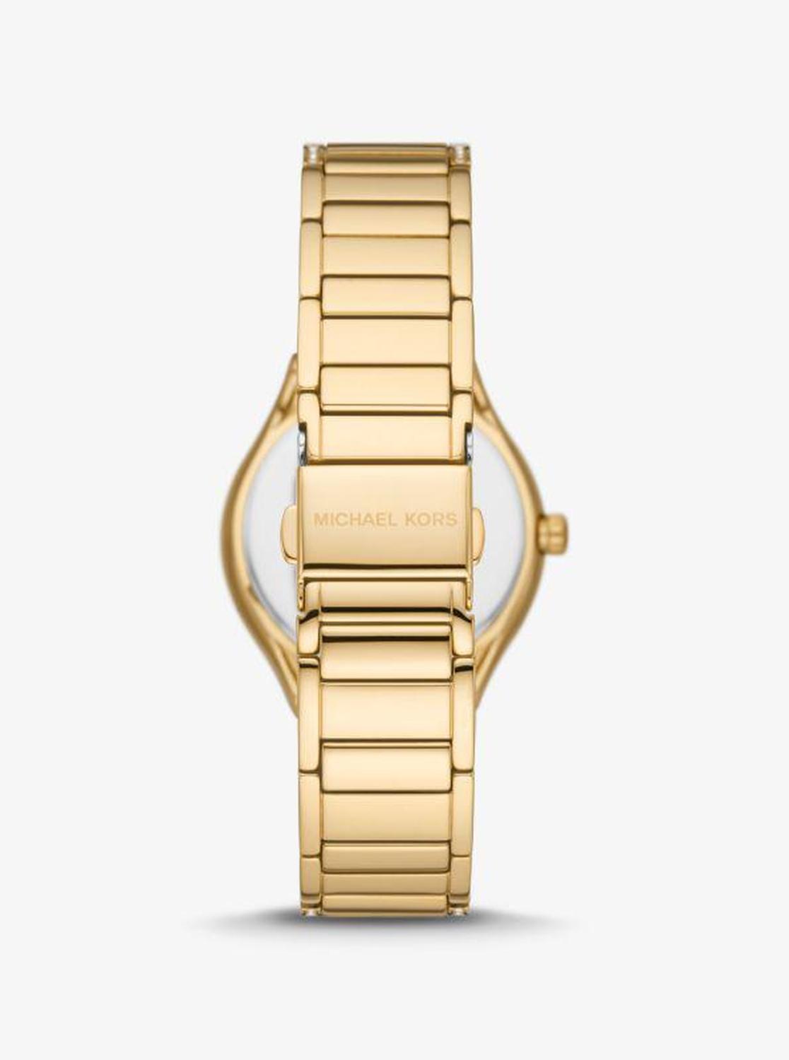 Dazzling and dainty, the mini Sylvia watch is sure to make a statement. Defined by a gold-tone stainless steel polished strap, this opulent timepiece features a pearlescent dial adorned with glittering pavé accents. Level up the shine by teaming it with sparkling accessories to match. • Mini watch • Stainless steel • Gold-tone hardware • Pavé topring and dial • Mini • 33mm case • Quartz/3-hand movement • Clasp fastening • Water resistant up to 5 ATM • 2-year warranty • Imported • Mini watch • Stainless steel • Gold-tone hardware • Pavé topring and dial • Mini • 33mm case • Quartz/3-hand movement • Clasp fastening • Water resistant up to 5 ATM • 2-year warranty • Imported