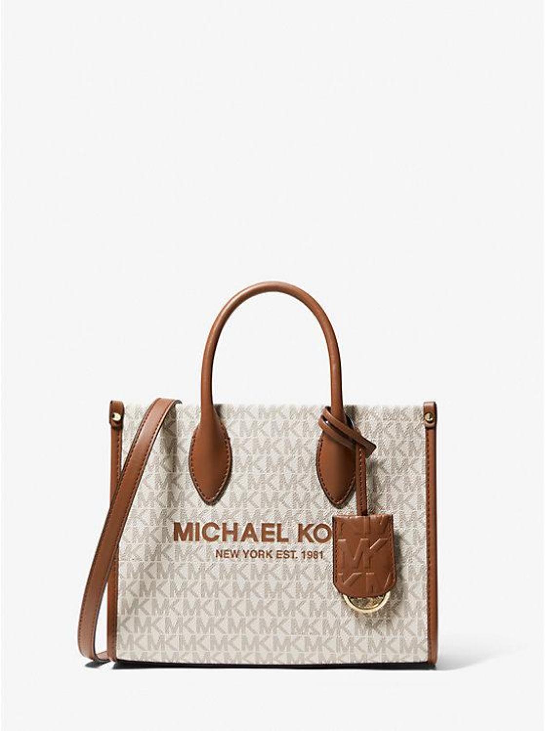 Crafted from Signature-print canvas in a structured silhouette, our Mirella crossbody features buttery-smooth trim and a polished MK charm. Its compact size is perfect for days about town. Carry the bag by the smooth top handles or over the shoulder via the detachable strap.