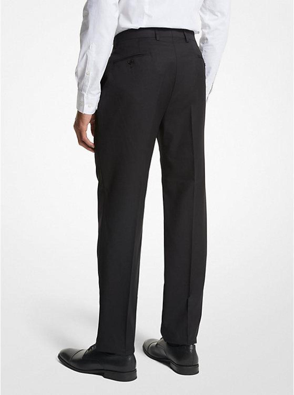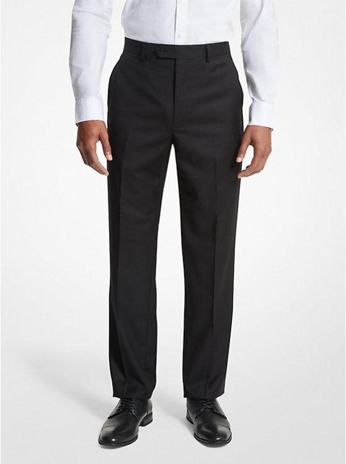 • A lightweight wool blend with a subtle crosshatch gives these versatile trousers elevated appeal. Tailored with belt loops, a tab button closure and on-seam side pockets, they look sharp paired with the matching blazer or worn with a cotton shirt.
