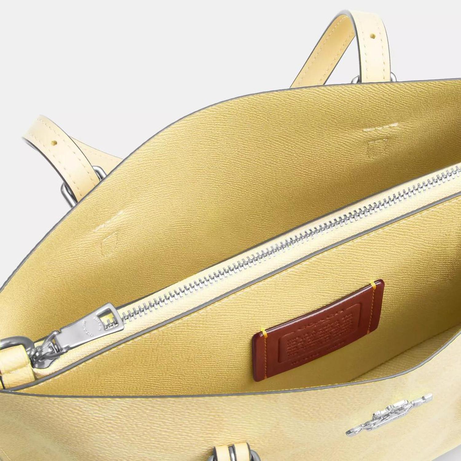 Signature coated canvas Zip-top closure fabric lining Side open compartments Handles with 4 3/4 drop Detachable strap with 22 drop for shoulder or crossbody wear 9 3/4 (L) x 7 1/2 (H) x 4 3/4 (W) Style No. CAL50 | Coach Outlet Mollie Tote Bag 25 In Signature Canvas - Yellow