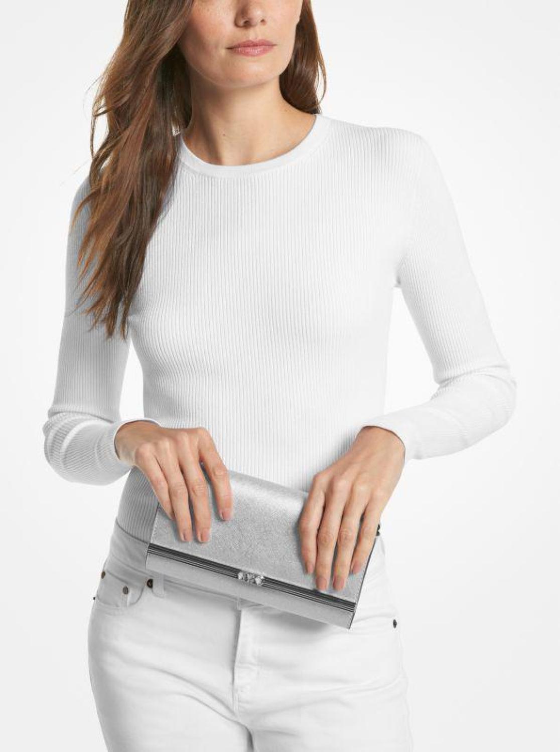 Mona Large Metallic Saffiano Leather Clutch