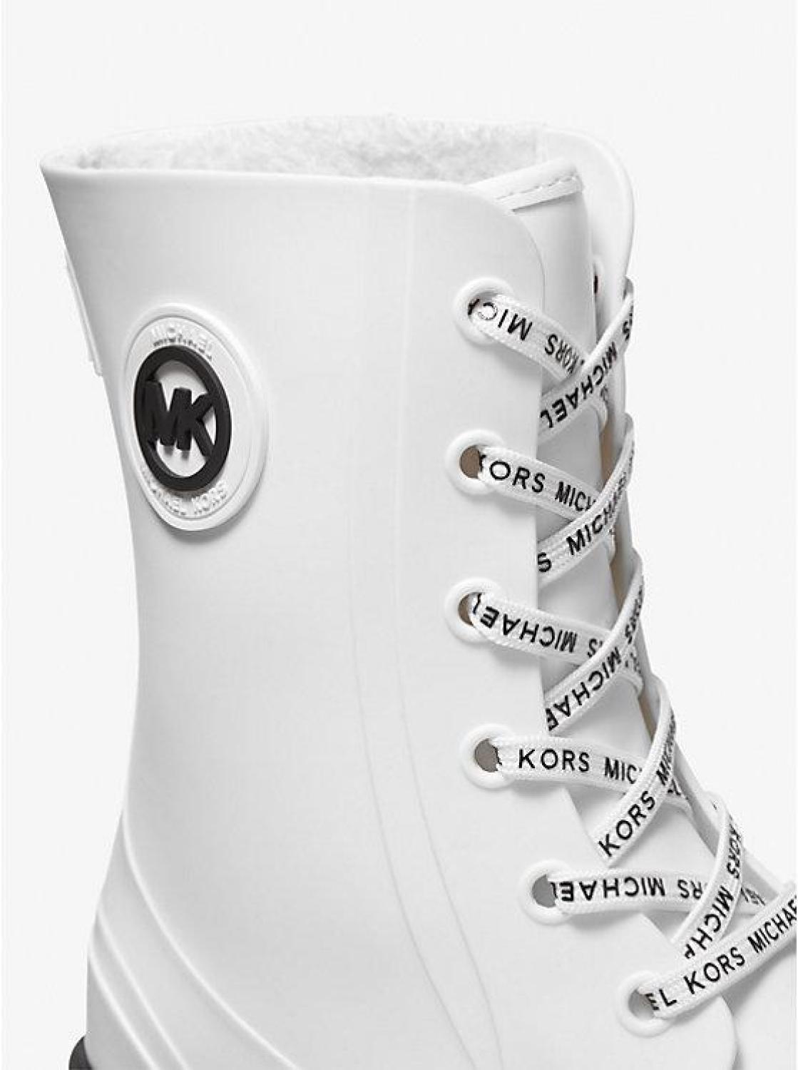 • The Montaigne rain boots are defined by our iconic charm and laces printed with our brand lettering for a cool, novelty feel. They’re crafted from waterproof PVC and set on sturdy gripped rubber soles. Inside lining not only adds extra warmth, but ensures a close, cozy fit too.