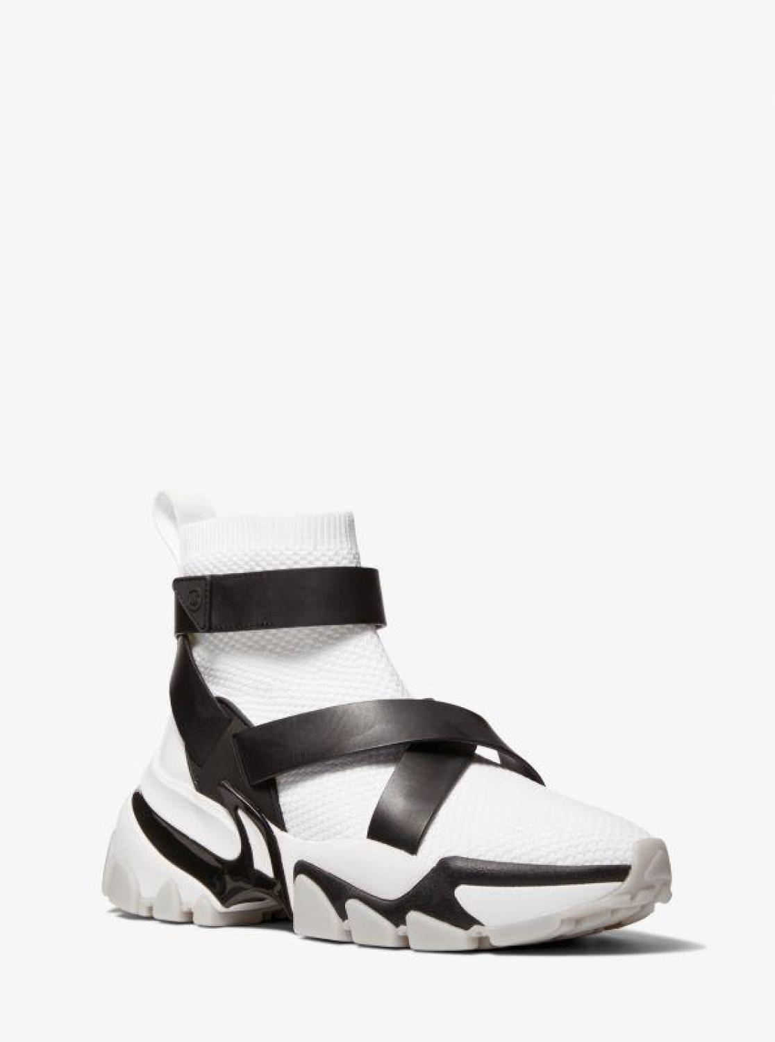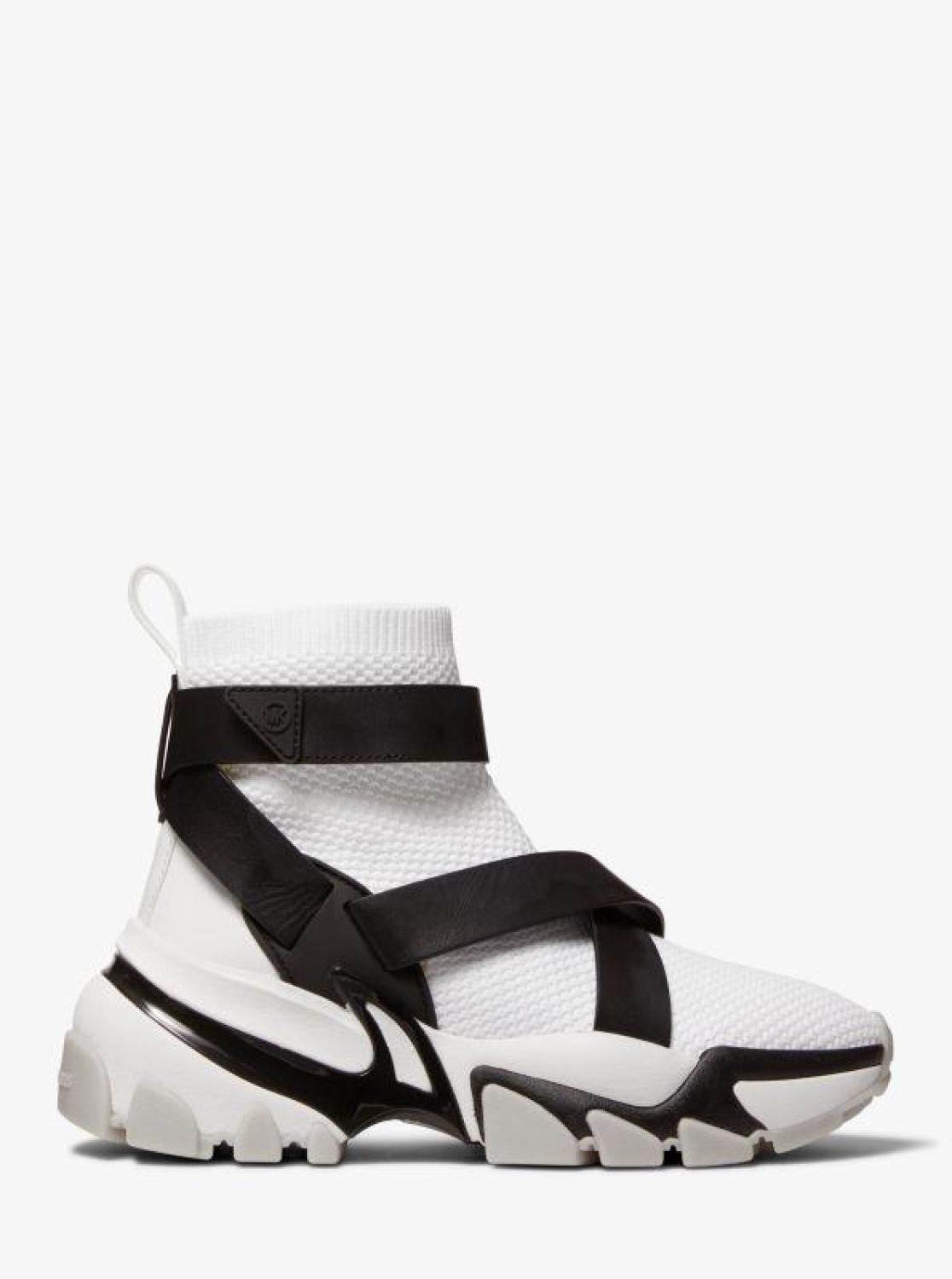• One part trainer, one part boot—our latest version of the Nick is a fashion-forward take on the sock shoe trend. Crafted from stretch knit with contrasting leather straps, it’s set on architectural molded rubber soles for added lift. Team this sporty-chic style with your favorite jeans.