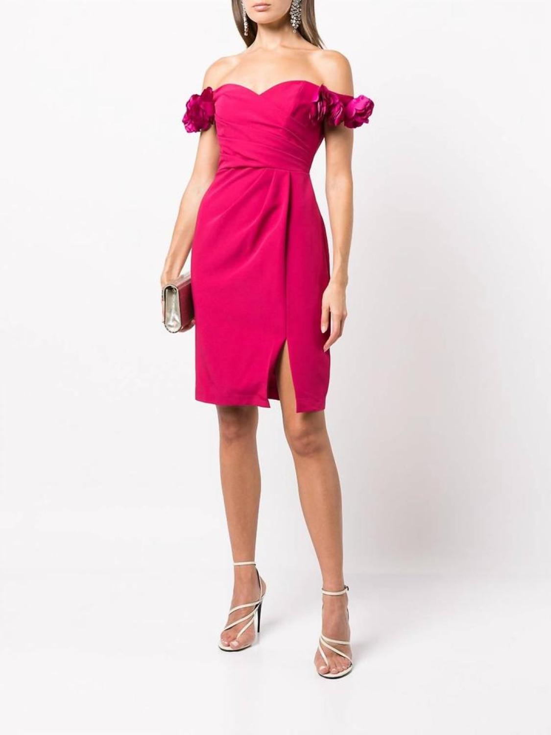 Off Shoulder Draped Cocktail Dress In Pink