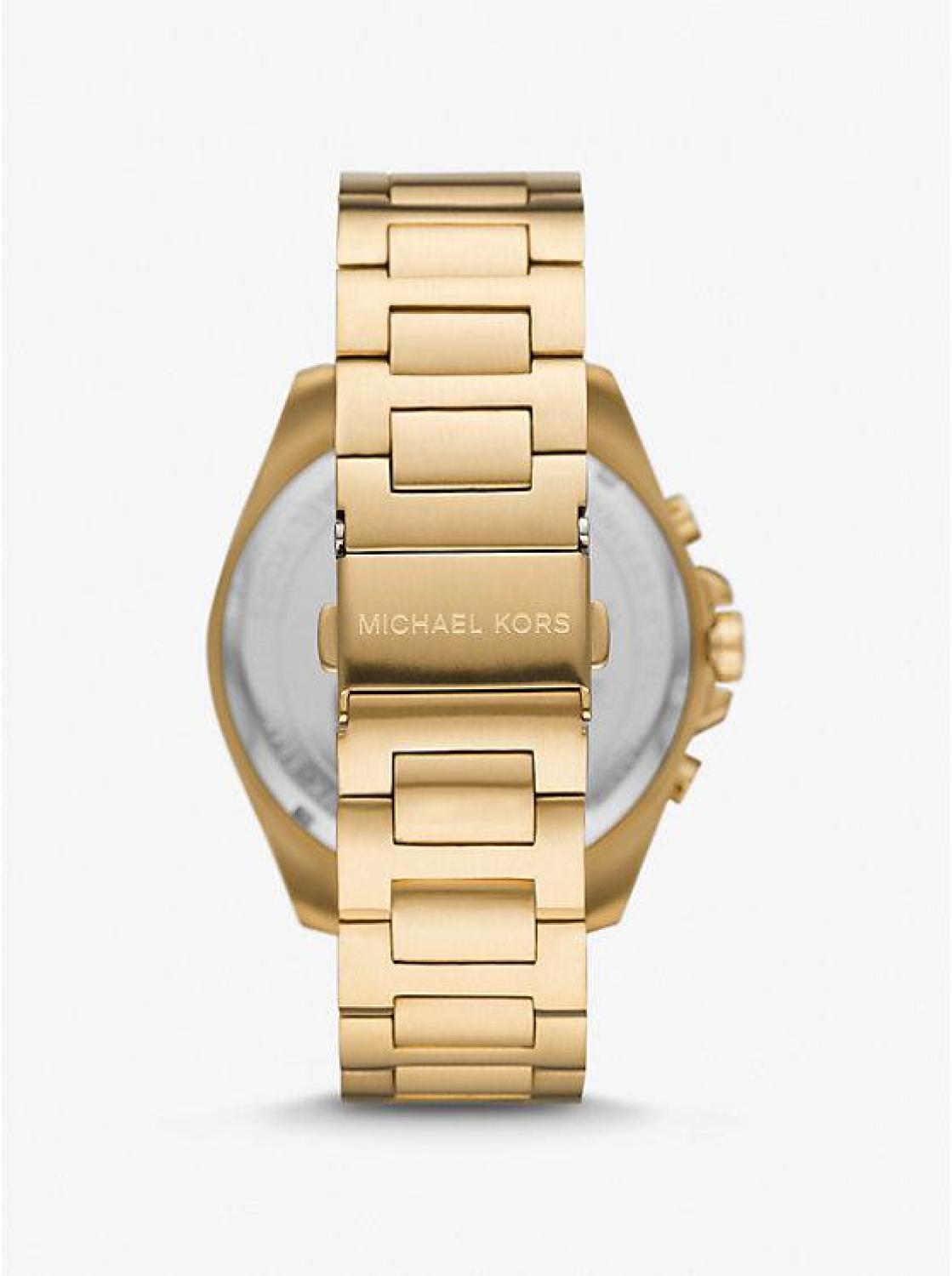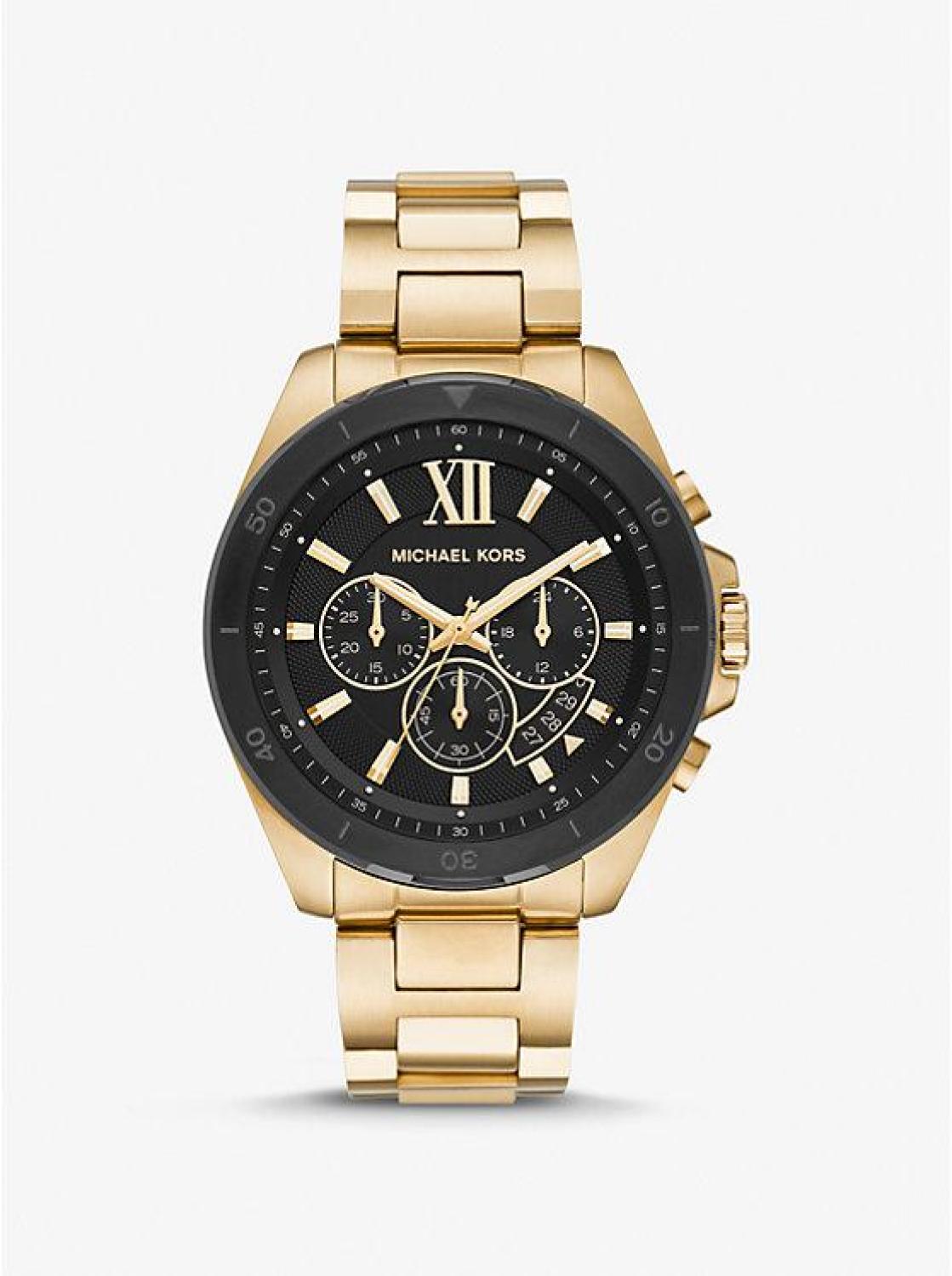 Our Brecken watch combines a timeless silhouette with precision and style. Designed in gold-tone stainless steel with contrasting accents against a black dial, this oversized timepiece features a tachymeter scale and chronograph mechanism for measuring time over distance. Oversized watch Stainless steel Gold-tone hardware Oversized 45mm case Quartz/chronograph movement Clasp fastening Water resistant up to 5 ATM 2-year warranty Imported Oversized watch Stainless steel Gold-tone hardware Oversized 45mm case Quartz/chronograph movement Clasp fastening Water resistant up to 5 ATM 2-year warranty Imported