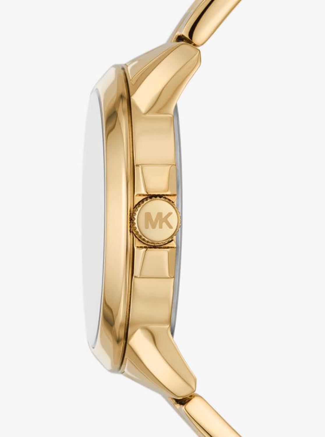 Our Brynn watch is a modern classic. Made from gold-tone stainless steel with an oversized round face and traditional bracelet strap, it features our iconic initials, front and center . It’s a perfect foundation for a stack of bracelets. • Oversized watch • Stainless steel • Gold-tone hardware • Oversized • 40mm case • Quartz/3-hand movement • Clasp fastening • Water resistant up to 5 ATM • 2-year warranty • Imported • Oversized watch • Stainless steel • Gold-tone hardware • Oversized • 40mm case • Quartz/3-hand movement • Clasp fastening • Water resistant up to 5 ATM • 2-year warranty • Imported