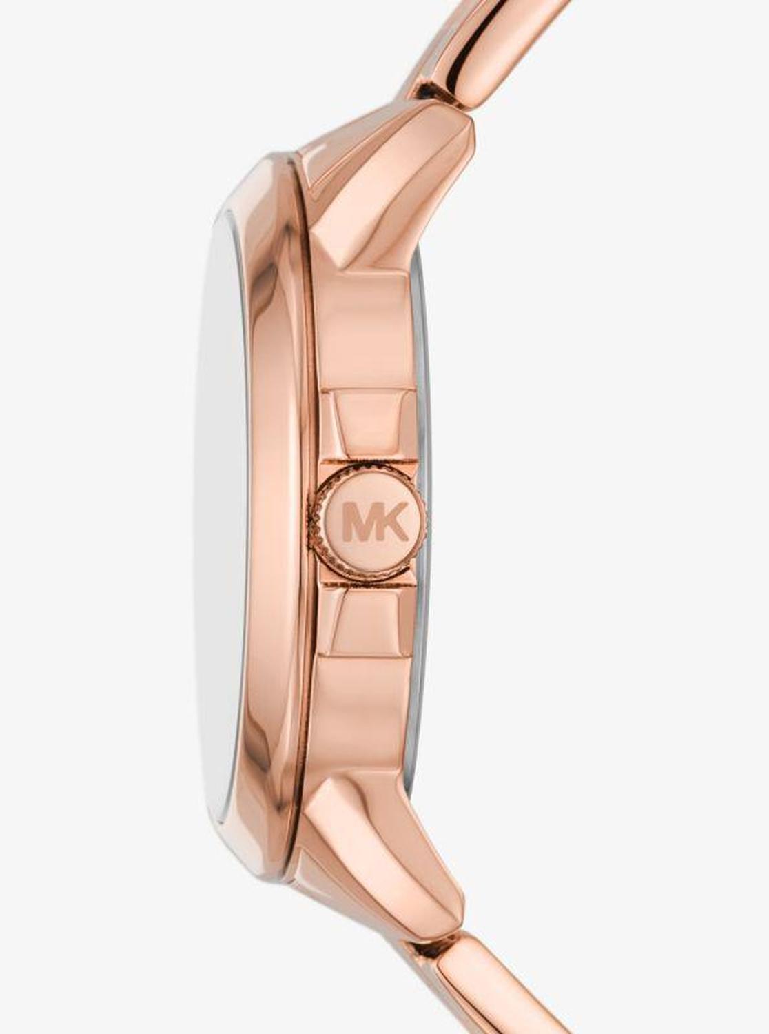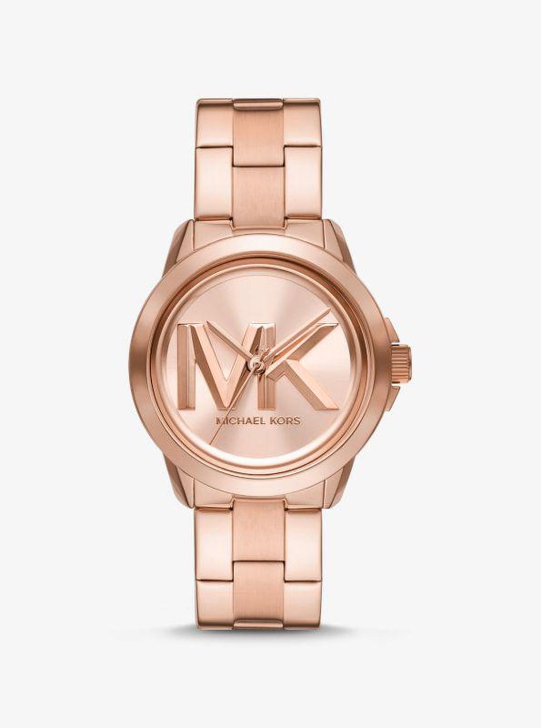 Our Brynn watch is a modern classic. Made from rose gold-tone stainless steel with an oversized round face and traditional bracelet strap, it features our iconic initials, front and center.. It’s a perfect foundation for a stack of bracelets. • Oversized watch • Stainless steel • Rose gold-tone hardware • Oversized • 40mm case • Quartz/3-hand movement • Clasp fastening • Water resistant up to 5 ATM • 2-year warranty • Imported • Oversized watch • Stainless steel • Rose gold-tone hardware • Oversized • 40mm case • Quartz/3-hand movement • Clasp fastening • Water resistant up to 5 ATM • 2-year warranty • Imported