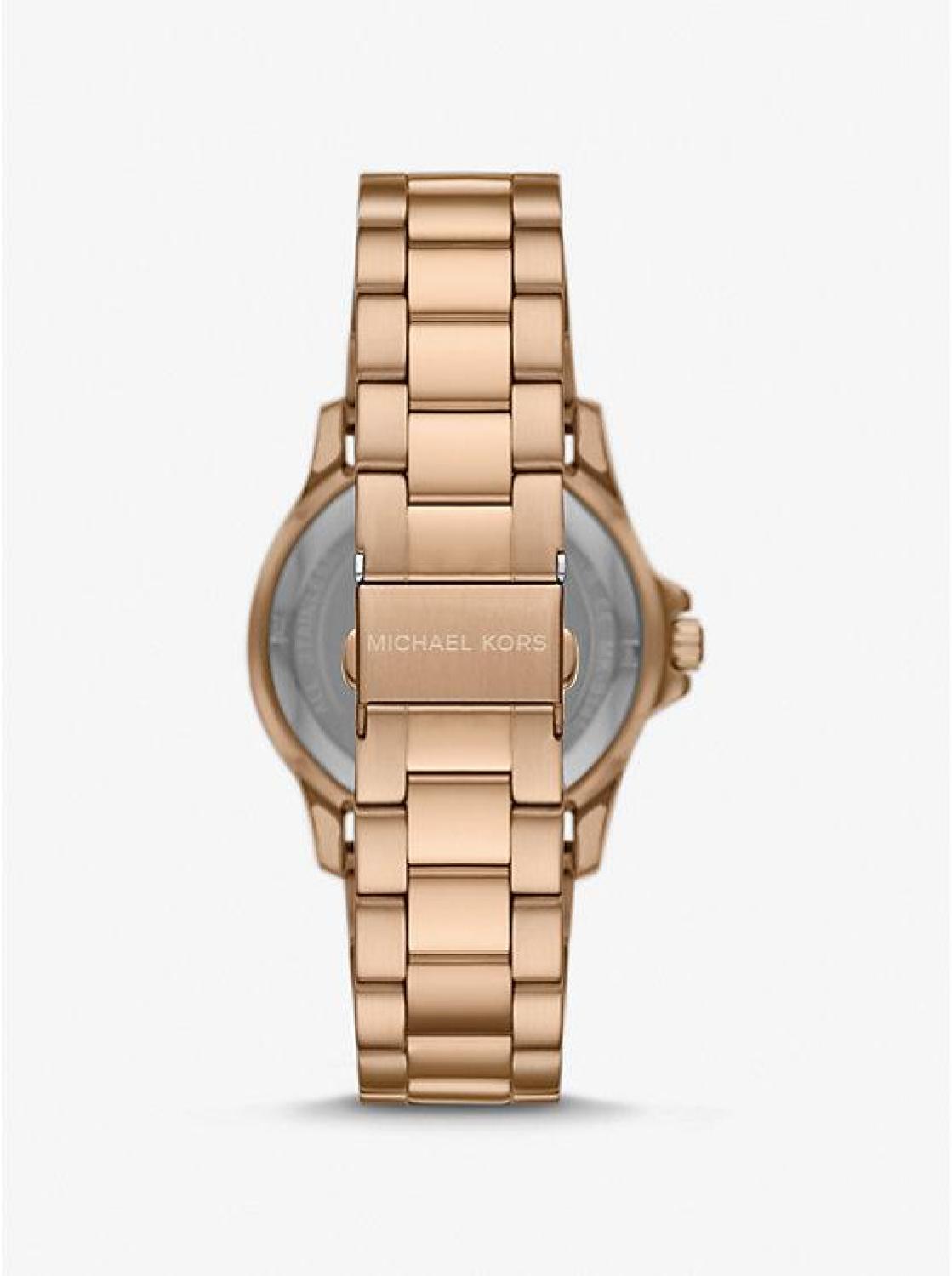 The iconic Everest watch returns, updated with a textured noir dial. A beige gold-tone stainless steel case promises to stand up to endless wear and turns to reveal Michael’s signature, while chronograph details and a date window ensure precise timekeeping. Stack it on your wrist with an arm full of jewelry.