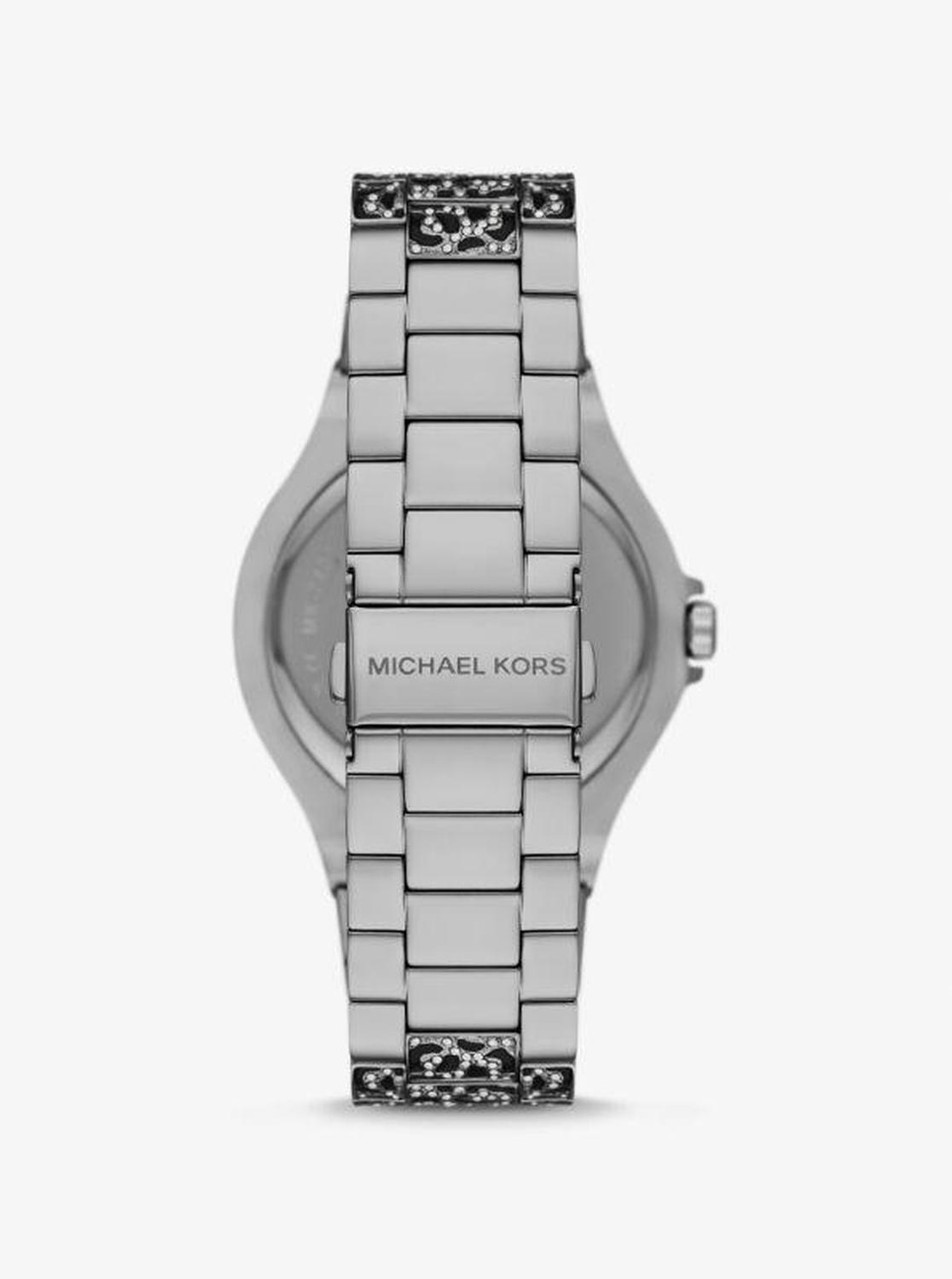• Make a bold statement any time of day with this glamorous take on our Lennox watch. Defined by a black-and-silver leopard motif, this oversized stainless-steel timepiece features dazzling allover pavé accents for an ultra-luxe finish.