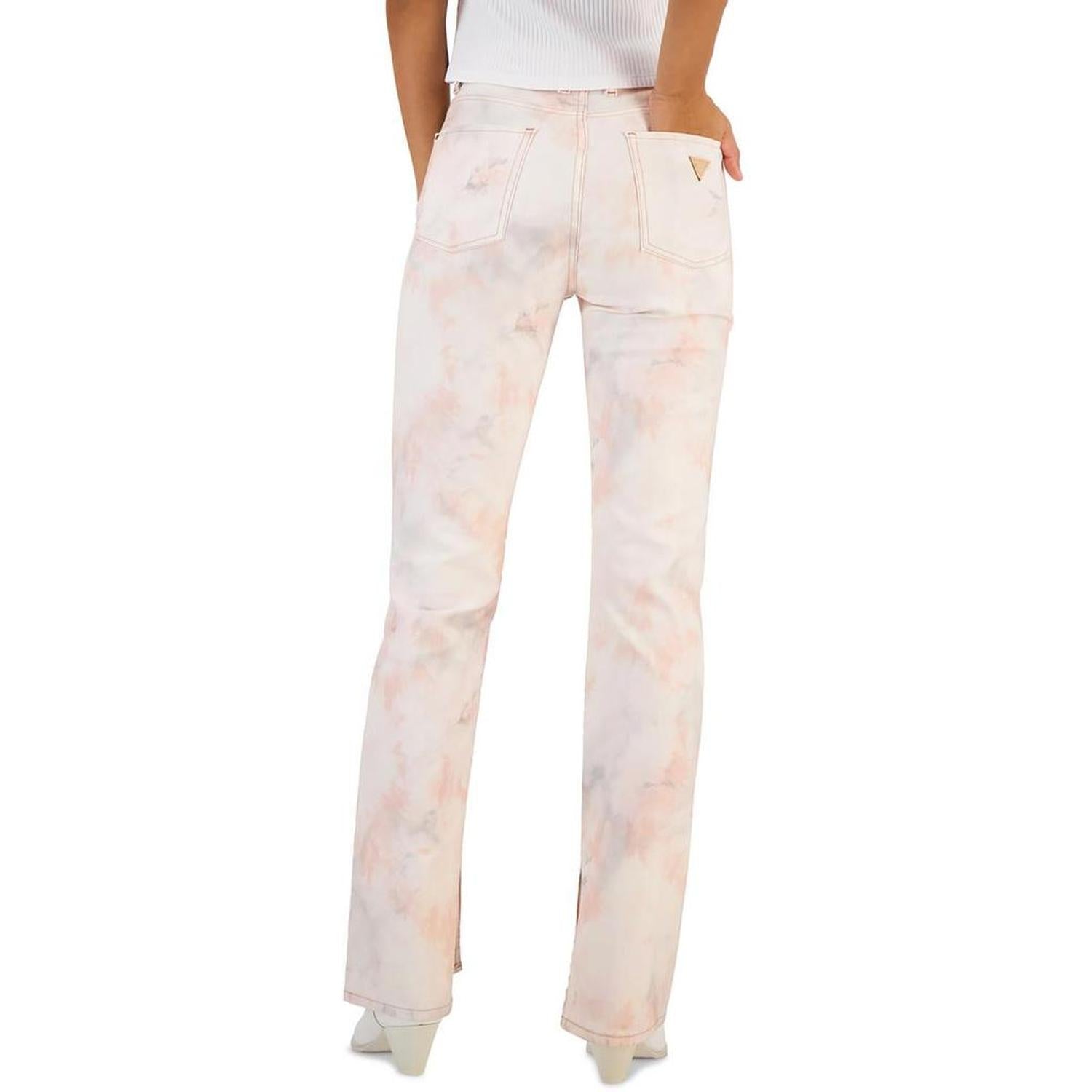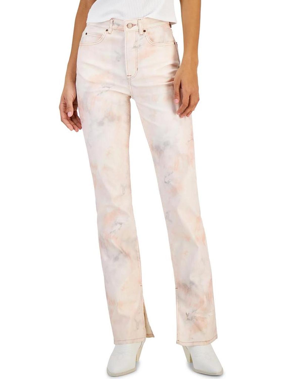 Pauline Womens Tie Dye Split Hem Straight Leg Jeans