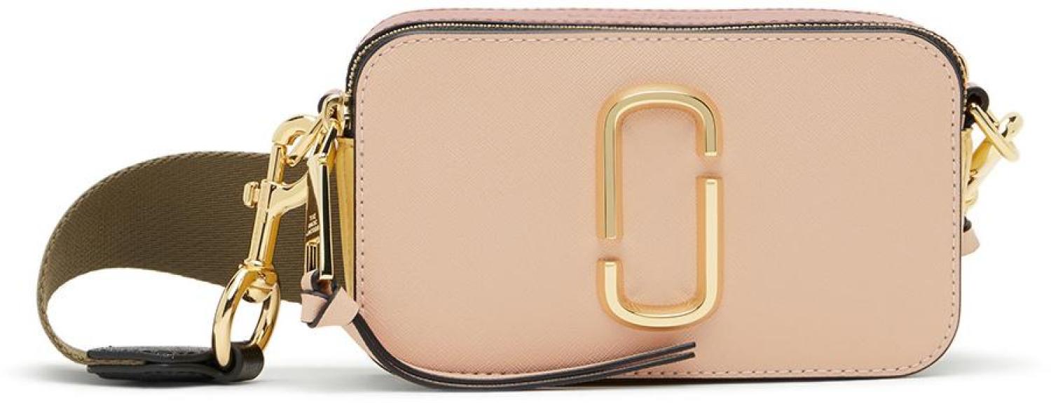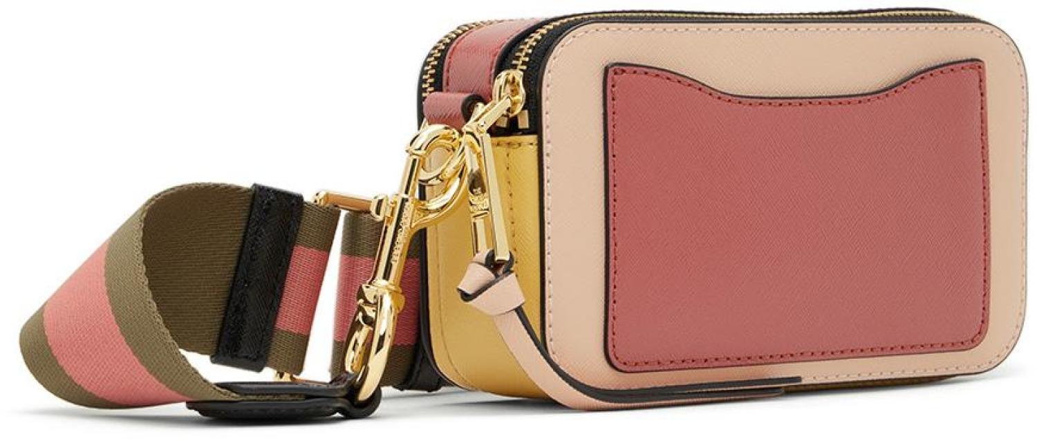 Saffiano leather shoulder bag colorblocked in tones of pink and yellow.