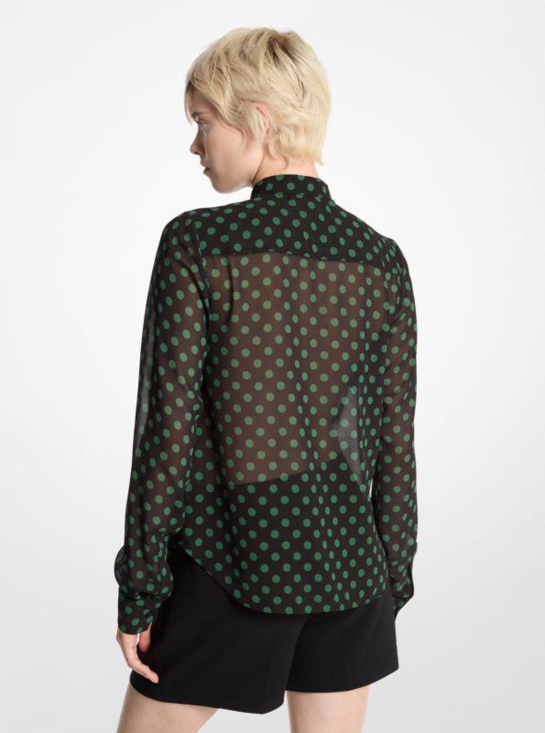 Polka dots lend a retro vibe to this georgette shirt. Equal parts statement-making and stylish, it’s cut in a billowy silhouette with a self-tying bow and buttoned cuffs. Temper the eye-catching print by styling it with classic tailored separates. • Blouse • Polyester georgette • 100% polyester • Lining: 100% polyester • Button fastening • Machine wash • Imported • Model is 5'9"/175 cm wearing size XS • Blouse • Polyester georgette • 100% polyester • Lining: 100% polyester • Button fastening • Machine wash • Imported • Model is 5'9"/175 cm wearing size XS