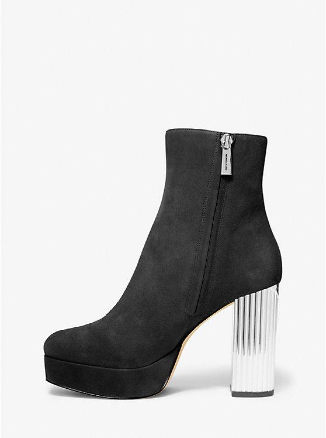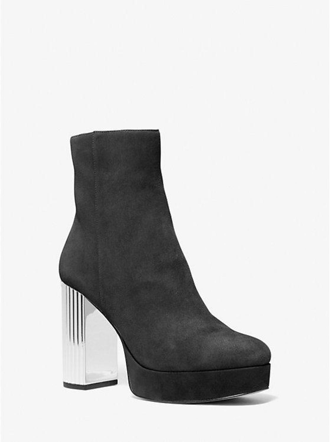 The Porter boot with elevate any evening look. This sky-high silhouette is made from soft suede in a beautiful almond toe silhouette. The tall block heel is mirrored for a dazzling effect, while sturdy enough to keep you on your toes and on the dance floor—all night long. • Boot • Suede • 100% leather • Lining: 100% polyester • Sole: rubber • Almond toe • Zip fastening • Heel height: 4" • Platform height: 1" • Heel type: galvanized • Imported • Boot • Suede • 100% leather • Lining: 100% polyester • Sole: rubber • Almond toe • Zip fastening • Heel height: 4" • Platform height: 1" • Heel type: galvanized • Imported