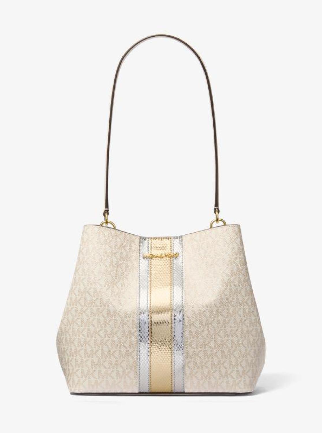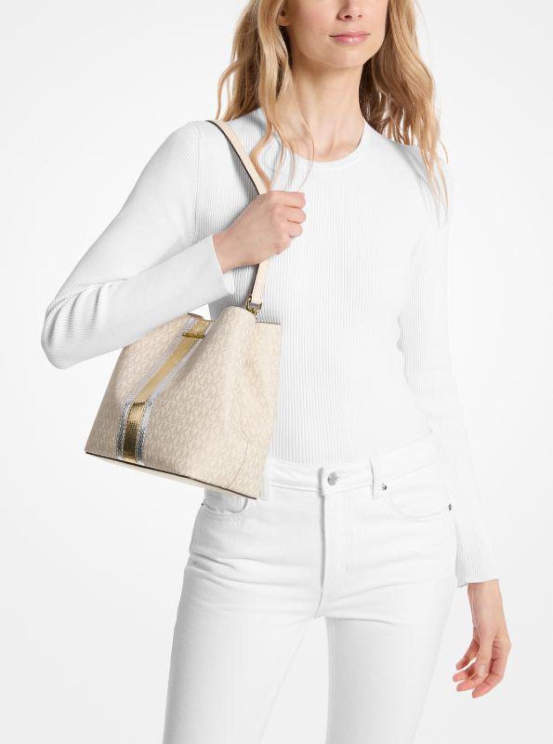 Pratt Medium Signature Logo and Metallic Shoulder Bag