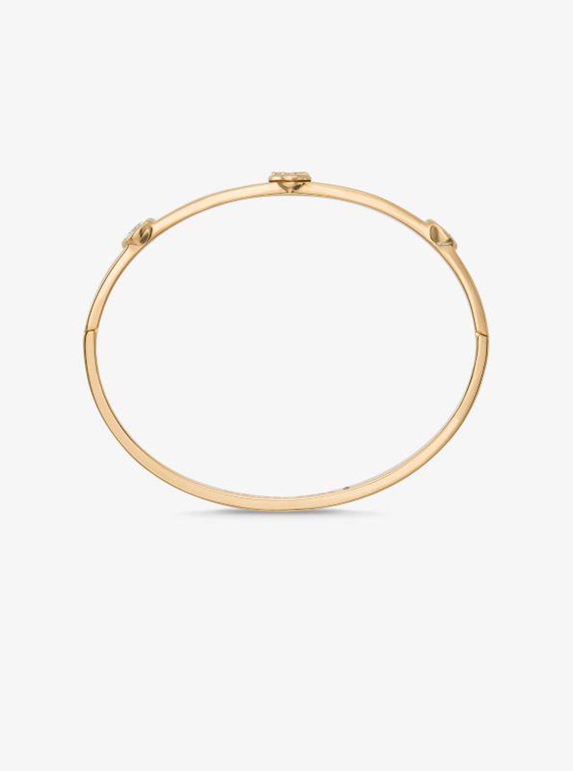 • Elevate your bracelet stack with this signature style. Featuring cubic zirconia stones and a logo charm detail, it’s crafted in sterling silver and plated with precious metal for a gleaming finish.