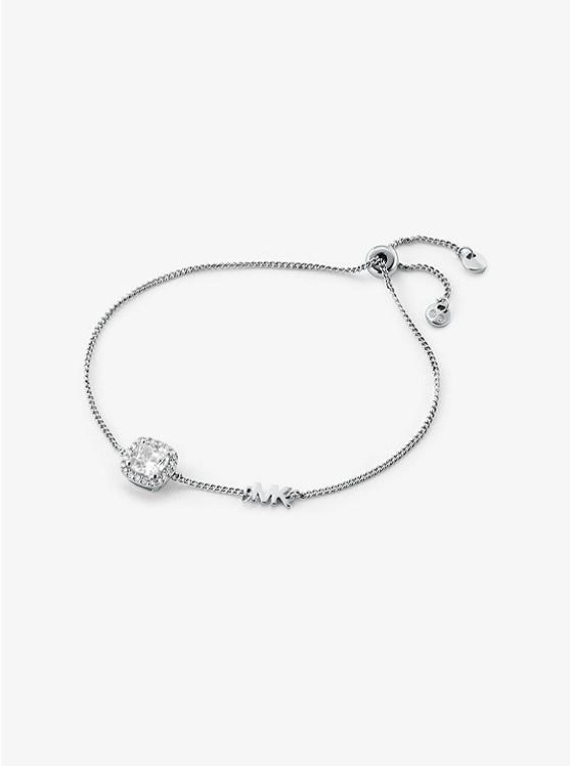 Elegant yet understated, this slider bracelet is destined for daily wear. Crafted from rhodium-plated sterling silver, it features a bold cushion-cut stone outlined with shimmering pavé accents and our logo initials for a signature twist. • Slider bracelet • Sterling silver • Rhodium plating • Cubic zirconia • 8.5" inner circumference • Slider clasp • Imported • Michael Kors jewelry is made of precious metals combined with various elements including semi-precious stones. Apply perfume and cosmetics prior to putting on your jewelry. To clean your jewelry, wipe with the soft buffing cloth provided. Keep your jewelry away from moisture as it promotes tarnish. We recommend storing your jewelry in a clean, dry place, such as the pouch that the product comes in. • Slider bracelet • Sterling silver • Rhodium plating • Cubic zirconia • 8.5" inner circumference • Slider clasp • Imported • Michael Kors jewelry is made of precious metals combined with various elements including semi-precious stones. Apply perfume and cosmetics prior to putting on your jewelry. To clean your jewelry, wipe with the soft buffing cloth provided. Keep your jewelry away from moisture as it promotes tarnish. We recommend storing your jewelry in a clean, dry place, such as the pouch that the product comes in.
