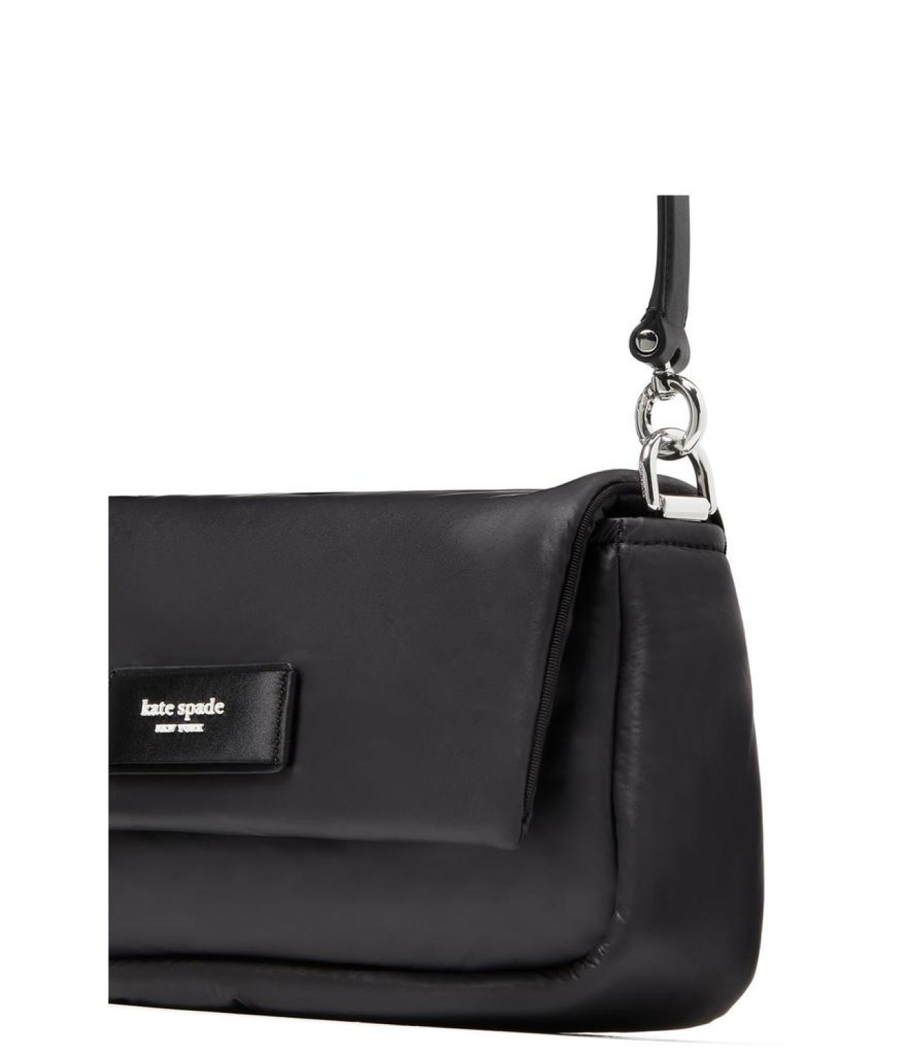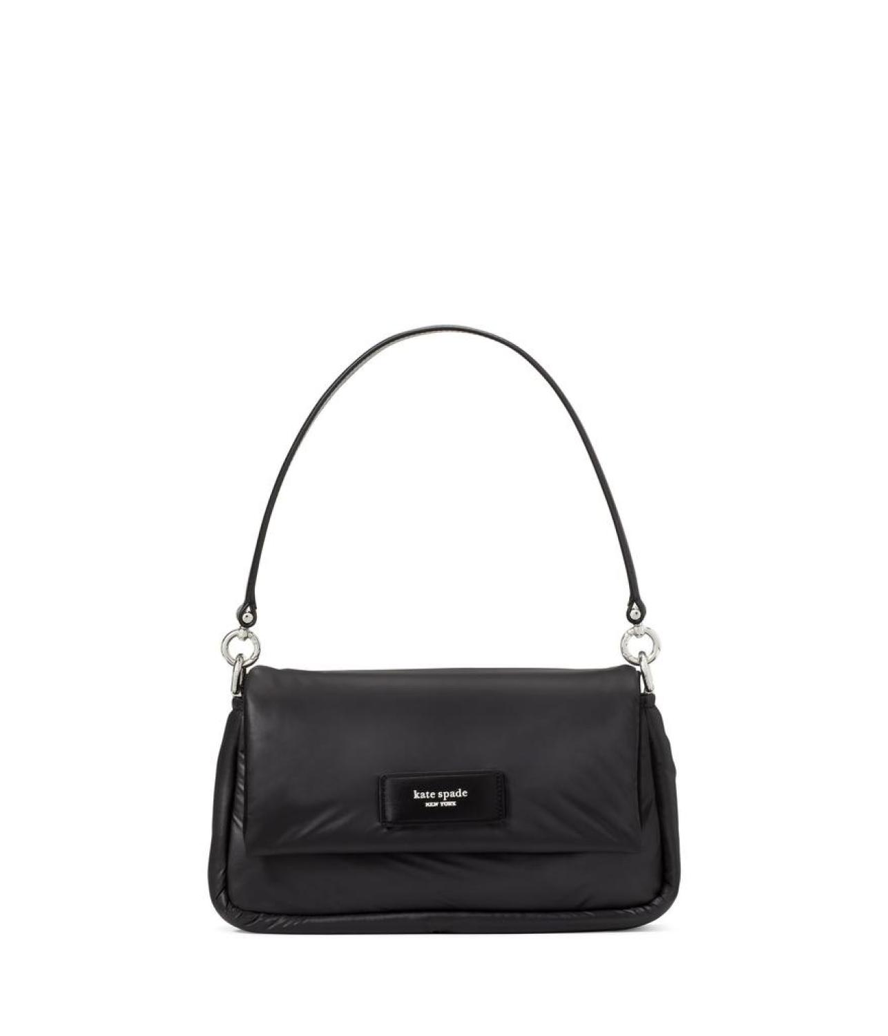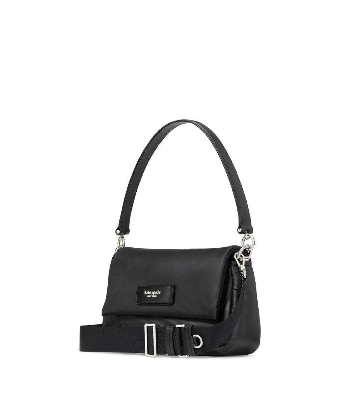Exude luxe splendor while carrying the Kate Spade New York® Puffed Puffy Fabric Lola Convertible Crossbody. It features one main compartment and flap with magnetic snap closure. It has a shoulder strap and adjustable crossbody strap fostering a convertible design. Polyester and cow leather construction. One interior zippered pocket. One exterior slip pocket. Polyester lining. Imported. Please note, the hardware color and interior lining may differ from the color shown in the photo. Measurements: Weight: 8 oz