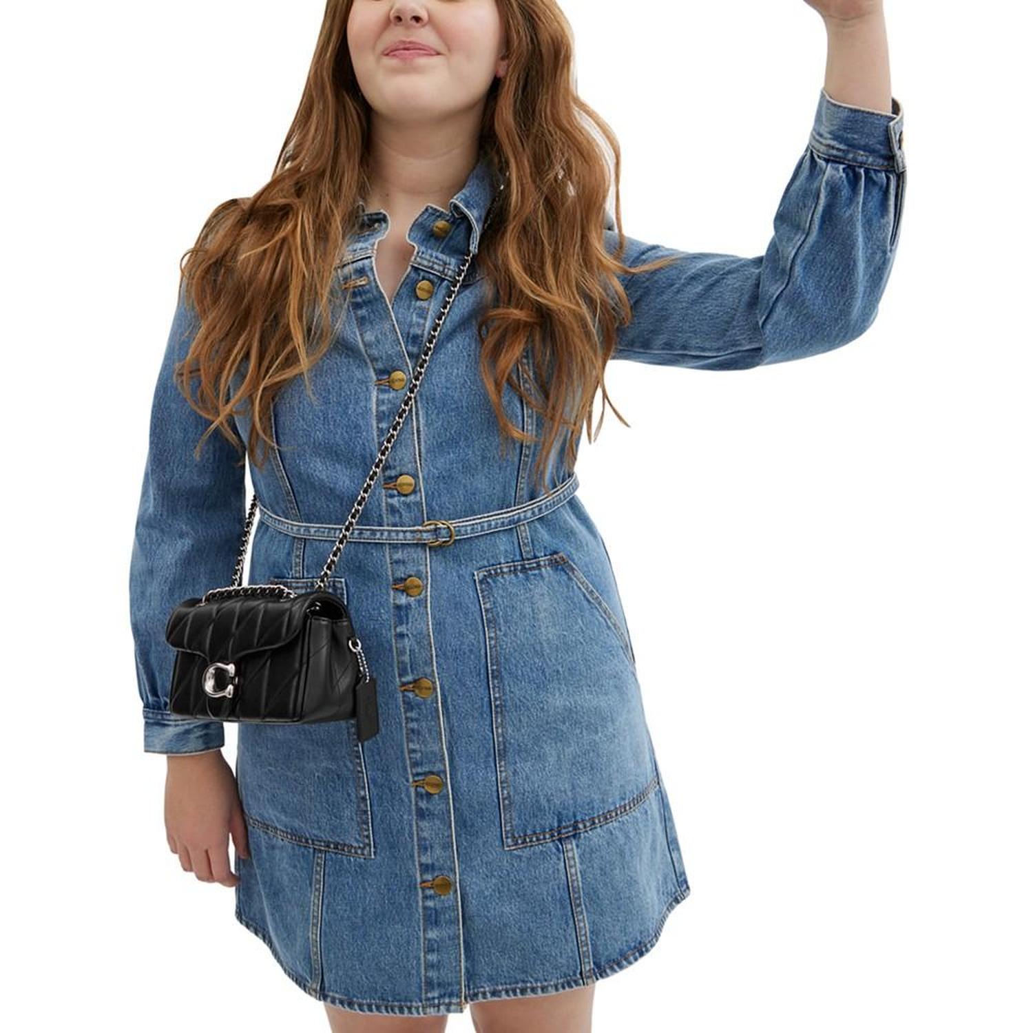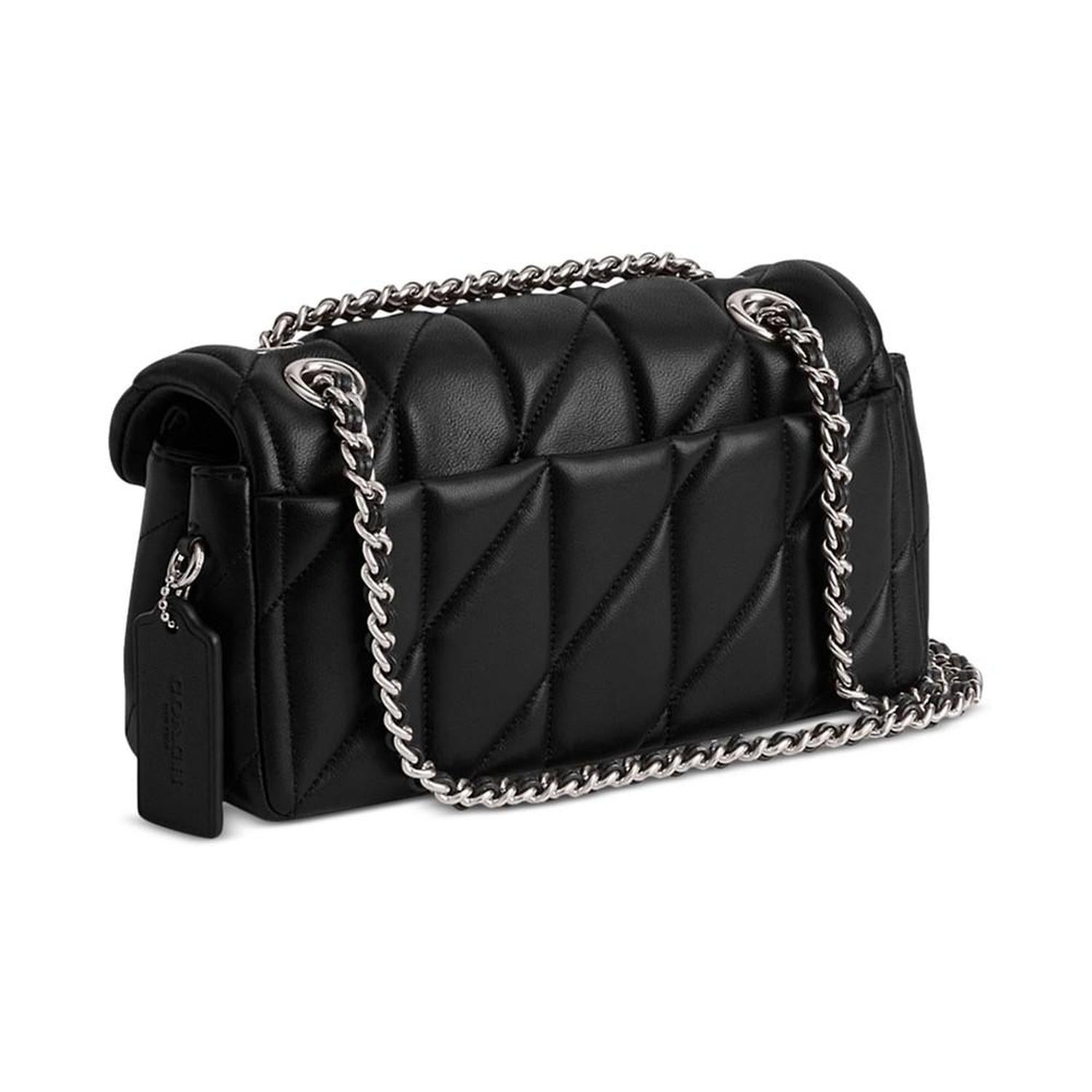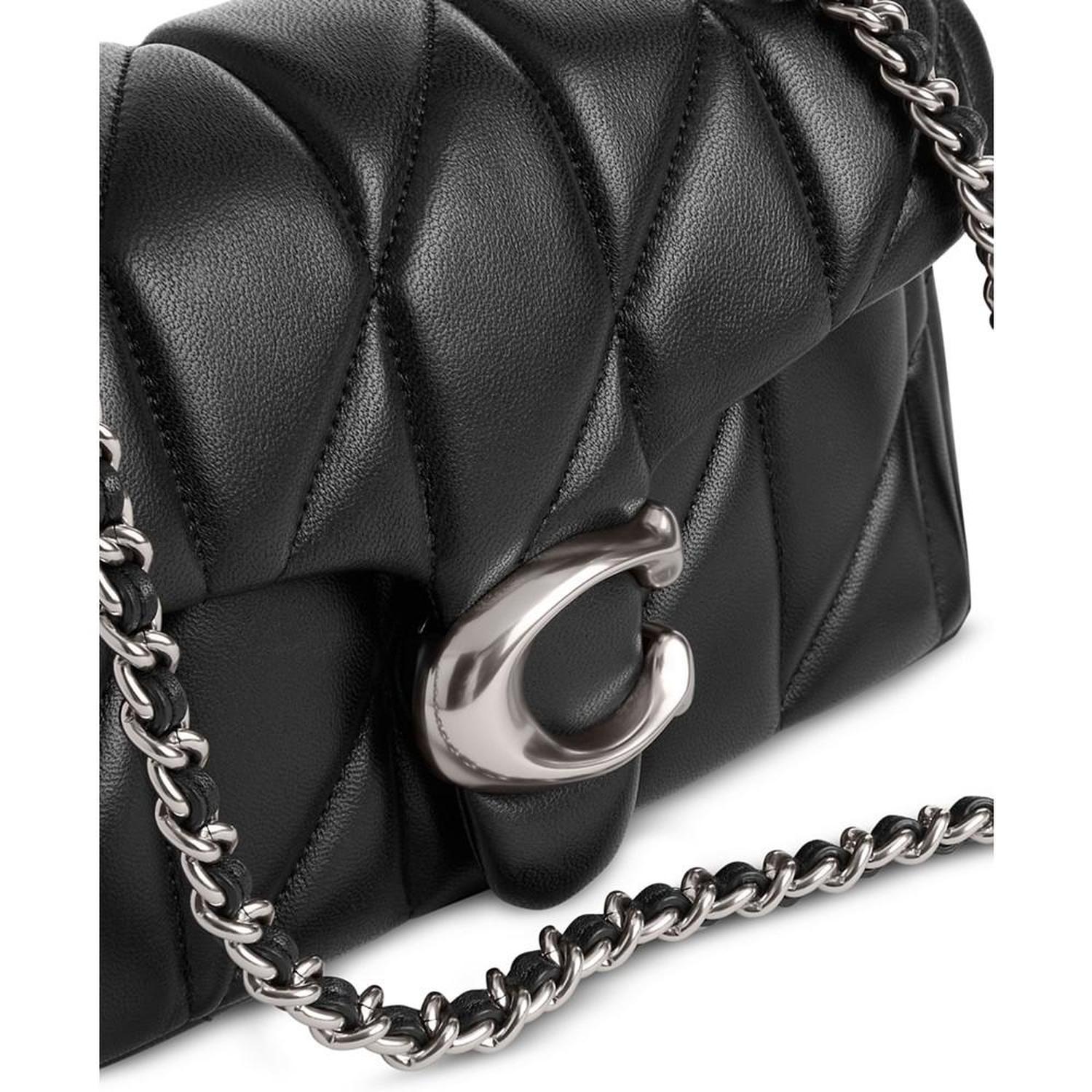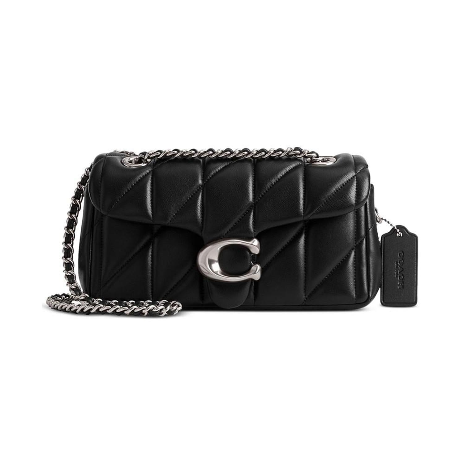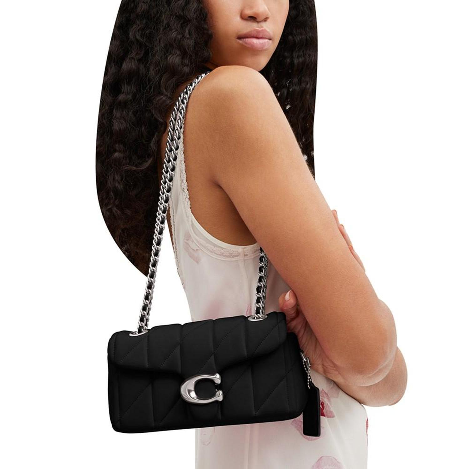 • The structured Tabby shoulder bag from COACH is crafted of quilted plush, ultra-soft nappa leather. The petite 20 features a long leather chain strap to wear crossbody or double up for a shorter, dressier look.
