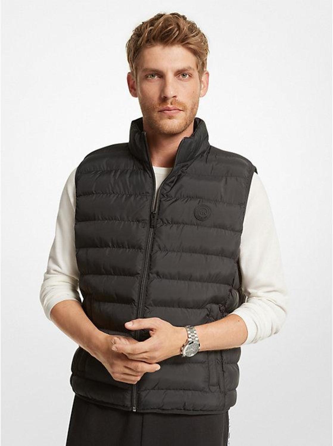 Cooler temperatures call for a quilted vest. Perfect for layering in between seasons, our water-resistant version is fully lined and features a rubberized logo detail along the chest. Zip it over sweaters and much more. • Puffer vest • Water-resistant polyester • 100% polyester • Fill: 100% recycled polyester • Lining: 100% polyester • Zip fastening • Machine wash • Imported • Model is 6’2”/188 cm wearing size M • Puffer vest • Water-resistant polyester • 100% polyester • Fill: 100% recycled polyester • Lining: 100% polyester • Zip fastening • Machine wash • Imported • Model is 6’2”/188 cm wearing size M