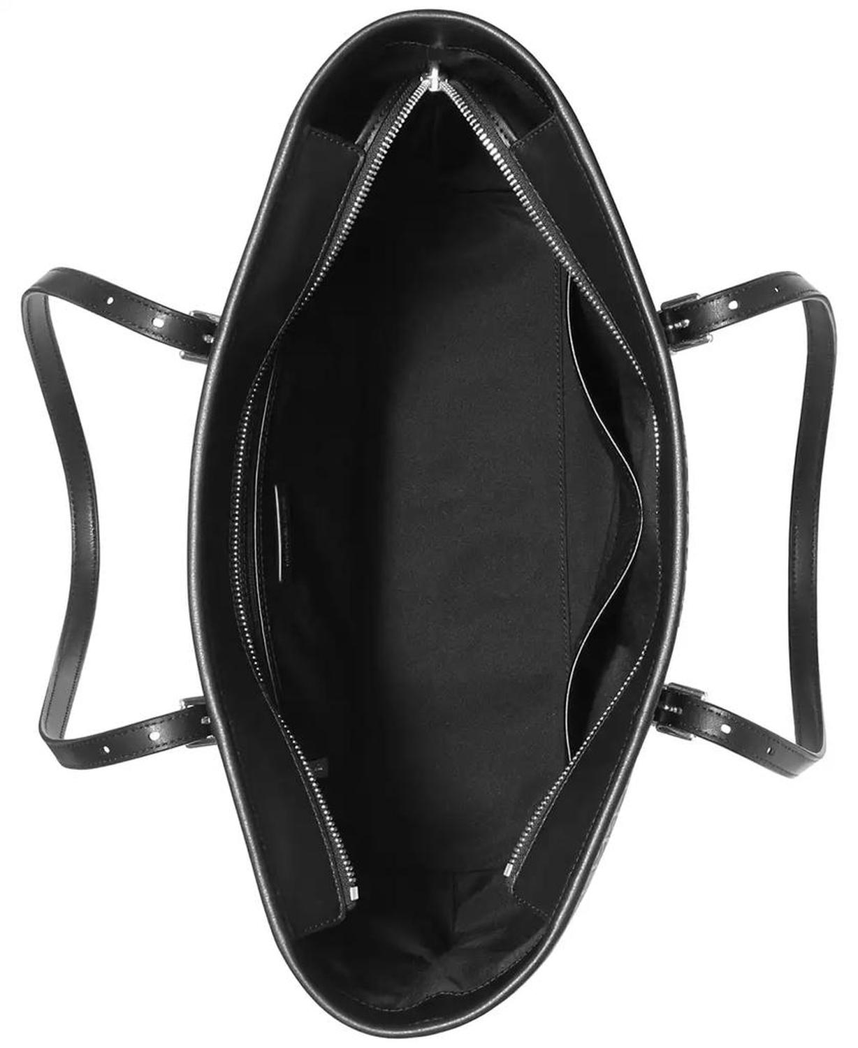 This timeless Quinn tote from MICHAEL Michael Kors is primed for work, play, and everything in between. The structured silhouette is crafted from logo jacquard and trimmed with smooth leather, which adds to its classic appeal. Extra-large-sized bag; 18-1/2"W x 11"H x 5-1/4"D (width is measured across the bottom of handbag); 2 lb. approx. weight Silhouette is based on 5'9" model 11" L top handle Top zip closure Silver-tone exterior hardware; interior back zip pocket & 2 front slip pockets Laptop compatible (std. size 13"-15") Fabric lining 87% polyester, 12% polyurethane, 1% acrylic; lining: 100% polyester; trim: leather Spot clean Imported