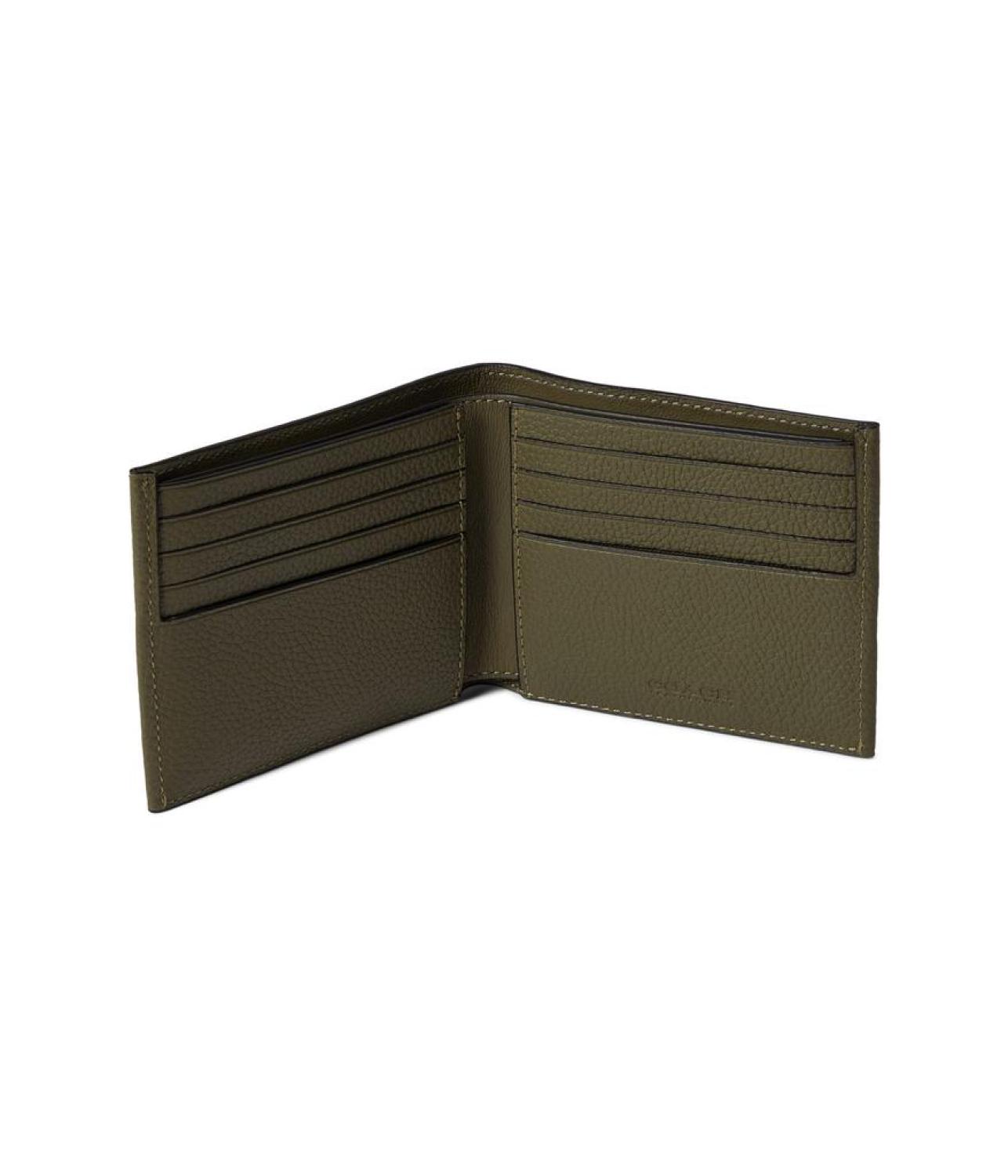 - Please Note: COACH™ items cannot be shipped to military addresses (APO or FPO) and addresses in Hawaii, the Virgin Islands, Guam or any other locations outside of the continental US. Make your lifestyle convenient and easygoing getting this COACHtm) Refined Double Bill in Pebble Leather w/ Sculpted C Hardware Branding wallet. The wallet has bifold design and card slots for convenience of card storage. Cow leather construction. Billfold wallet. Pockets:Ten card slots;One internal slip pocket. RPET lining with polyester twill lining. Imported. Measurements: Height: 4 3/8 in