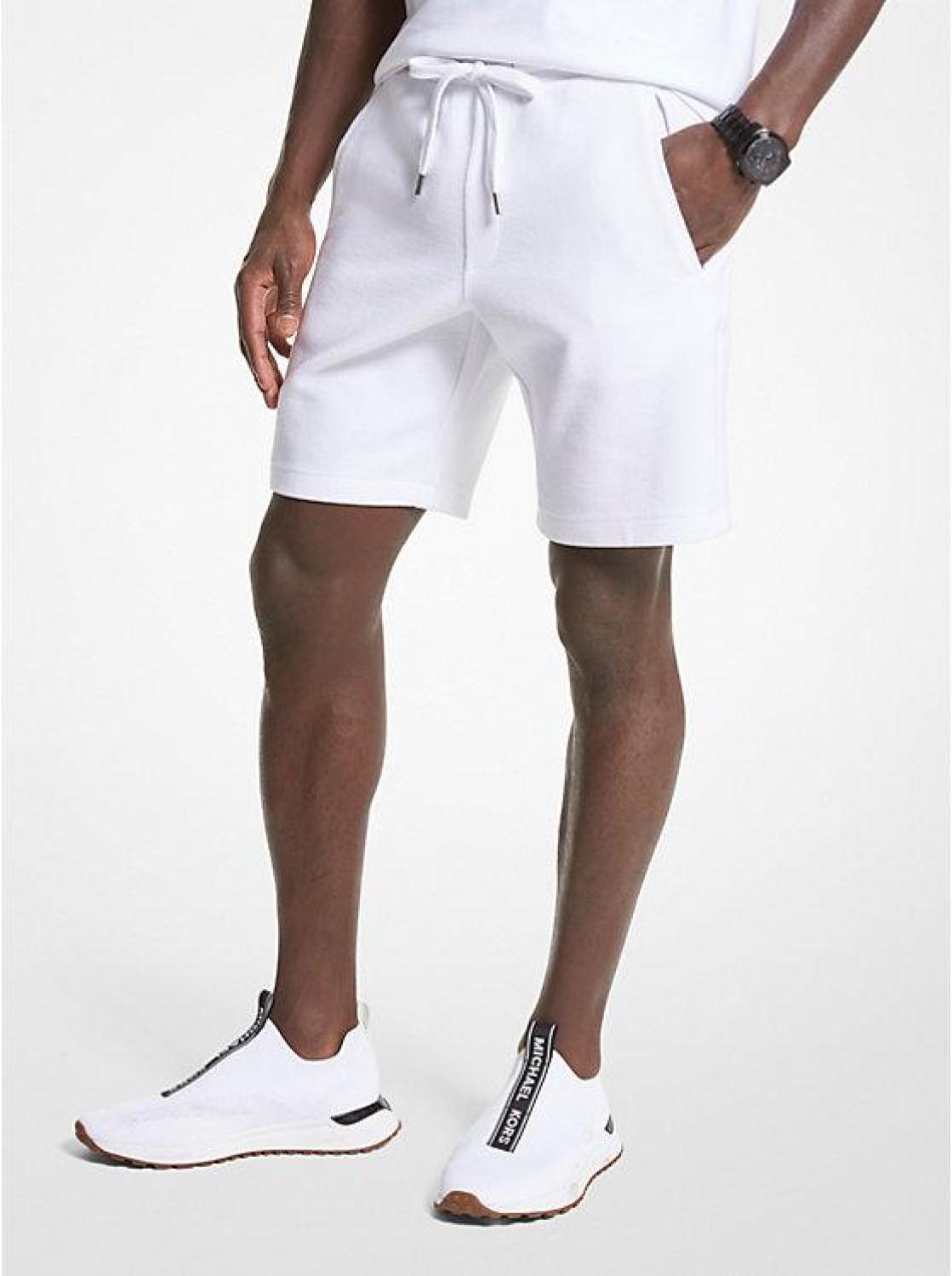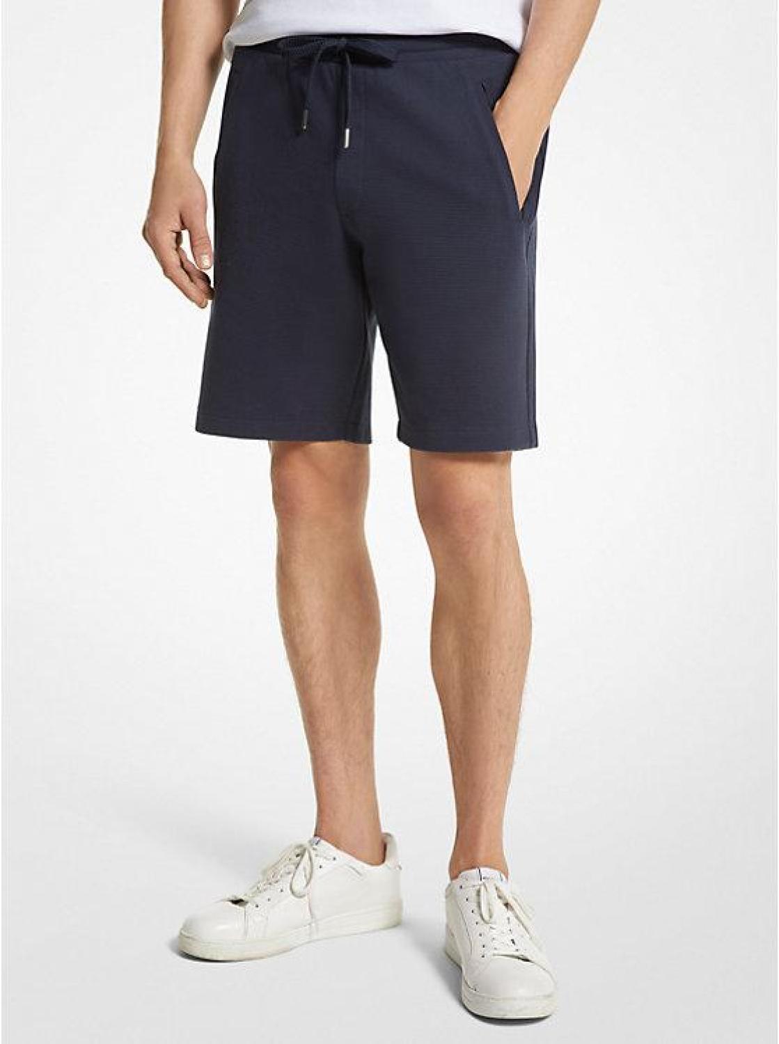 • Elevate your workout and lounge wardrobe with these textured drawstring shorts that deliver style and function. Crafted from a tactile cotton blend, they’re equipped with front and back pockets for storing on-the-go essentials like your keys and wallet.