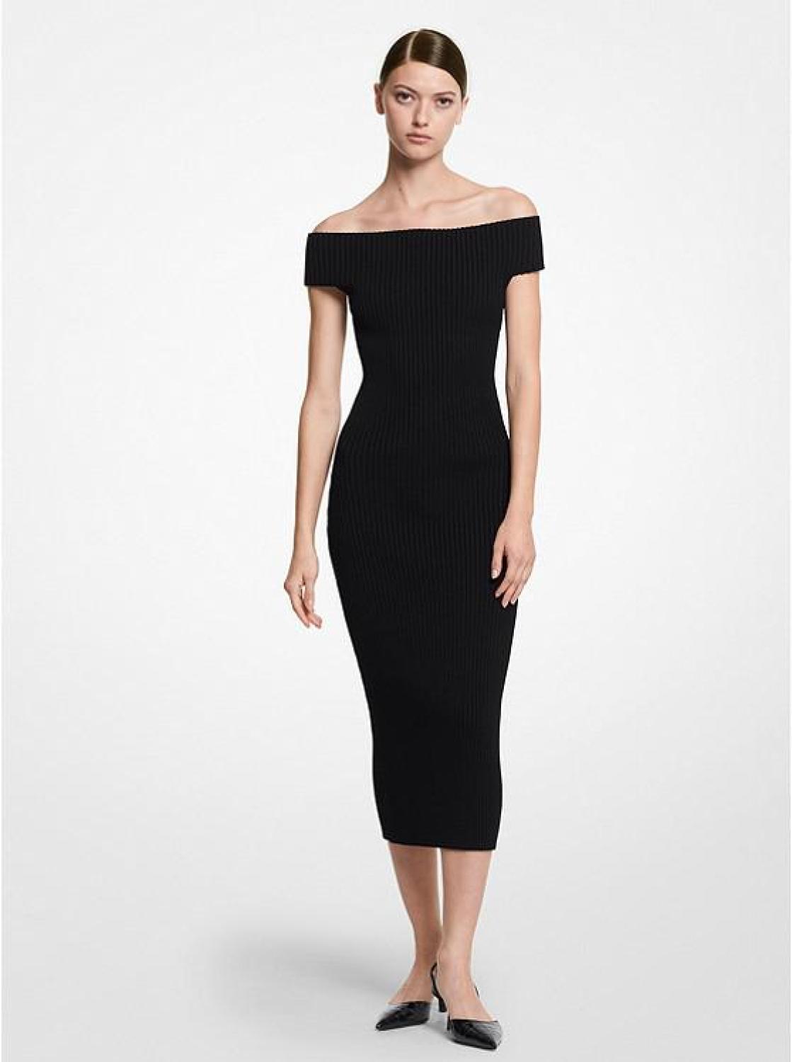 Ribbed Stretch Viscose Off-The-Shoulder Dress