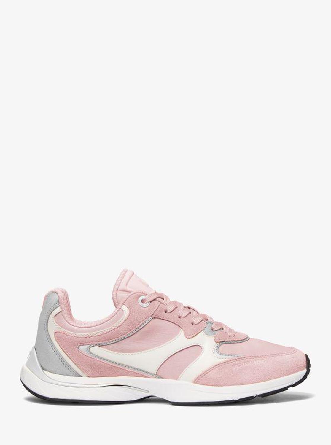 • Our Riley trainers feel sporty yet sophisticated in a low-profile design crafted from a mix of suede, leather and mesh. Metallic accents add a pop of glamour. Style them with a sleek workout set or chic loungewear when you’re out and about.