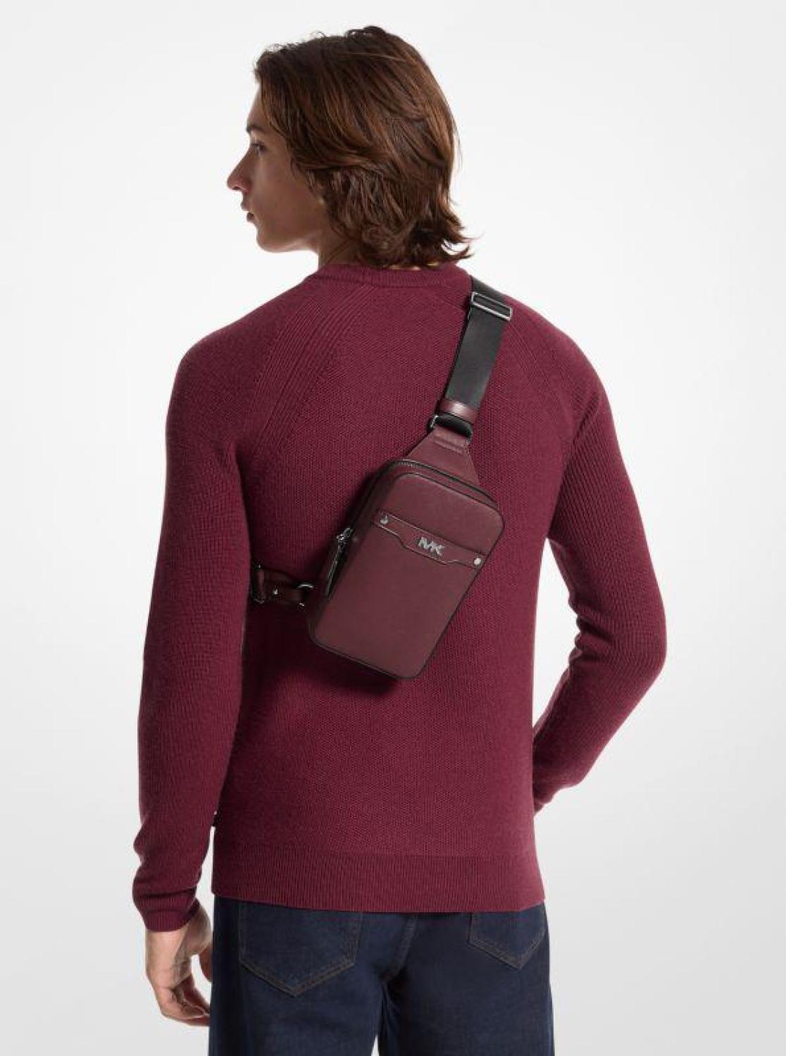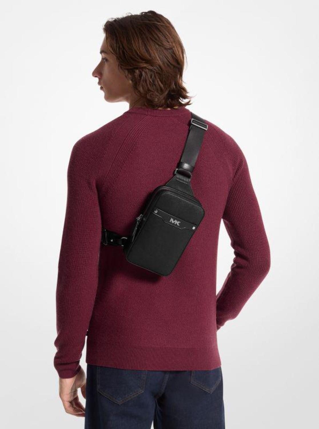 Sporty yet sophisticated, the Rivington sling pack features a structured design in rich Saffiano leather with minimal hardware and an adjustable woven strap for comfort. Slip your phone and wallet inside and you’re ready to go. • Sling pack • Leather • 100% leather • Gunmetal hardware • 5.12”W X 8.27"H X 1.97”D • Handle drop: 21.6” • Exterior details: front slip pocket • Interior details: front phone pocket • Lining: 100% polyester • Zip fastening • Dust bag not included • Imported • Sling pack • Leather • 100% leather • Gunmetal hardware • 5.12”W X 8.27"H X 1.97”D • Handle drop: 21.6” • Exterior details: front slip pocket • Interior details: front phone pocket • Lining: 100% polyester • Zip fastening • Dust bag not included • Imported