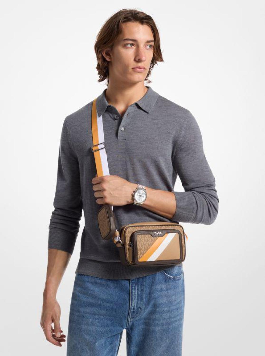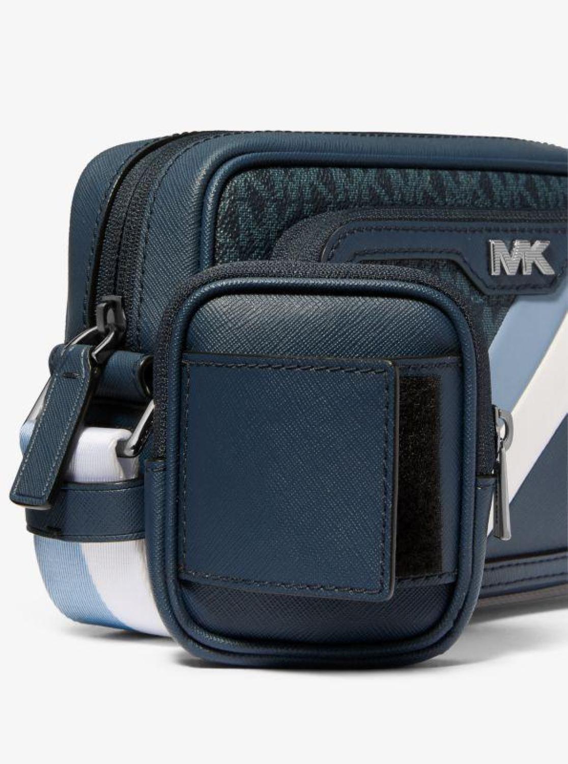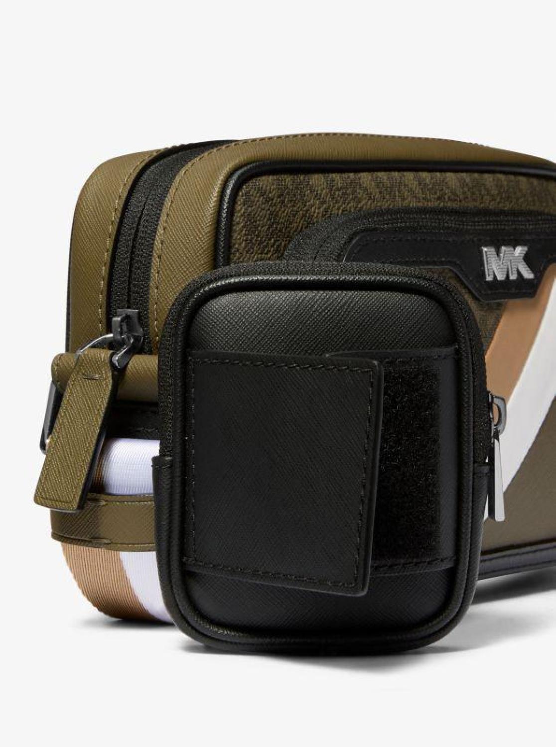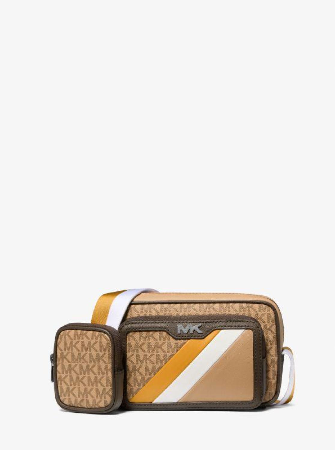 • The Rivington camera bag combines our Signature logo-print canvas with tonal stripes for a graphic look. A front zip pocket and detachable mini pouch keep you organized while on the go.