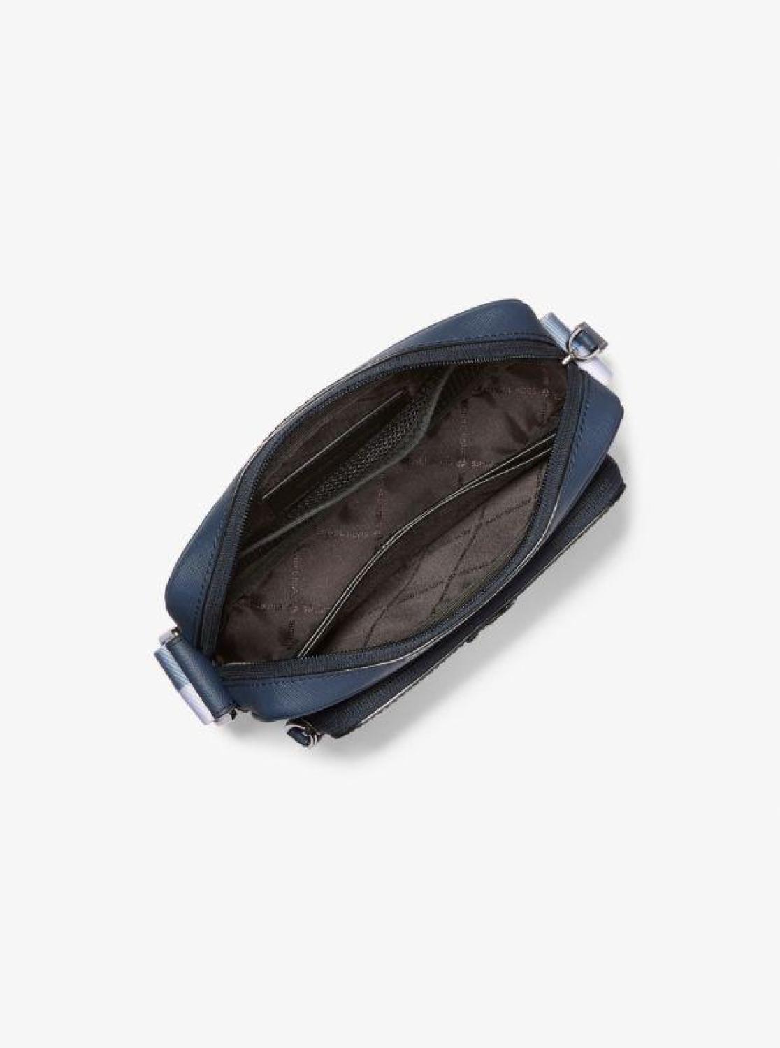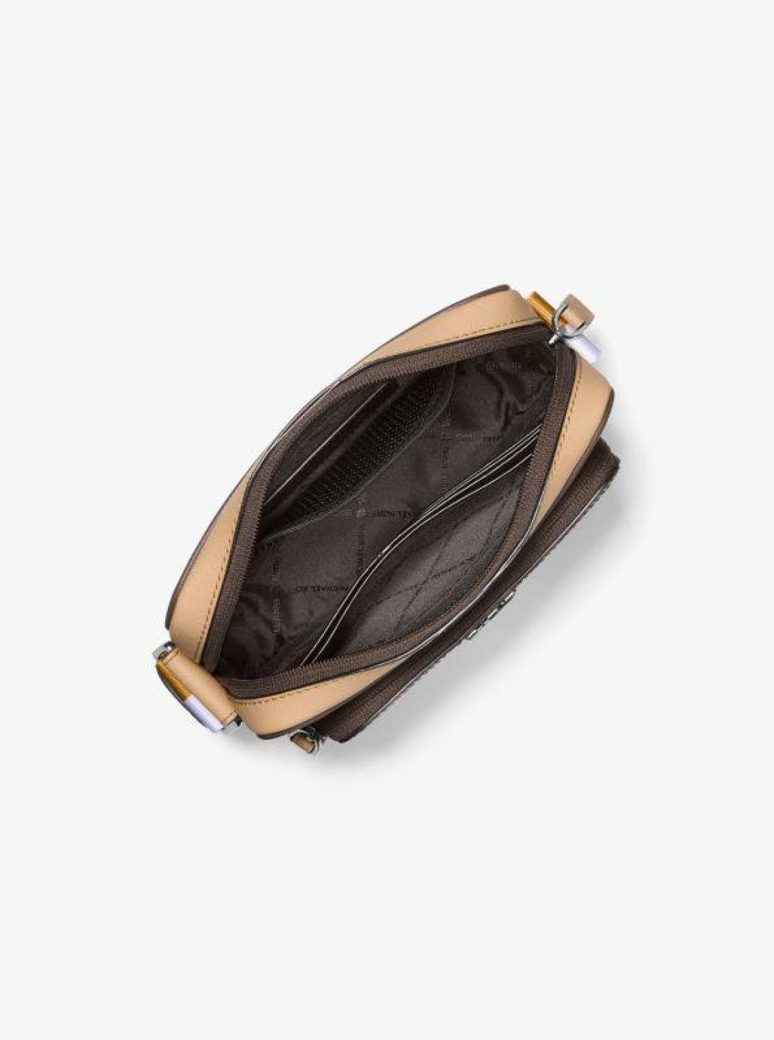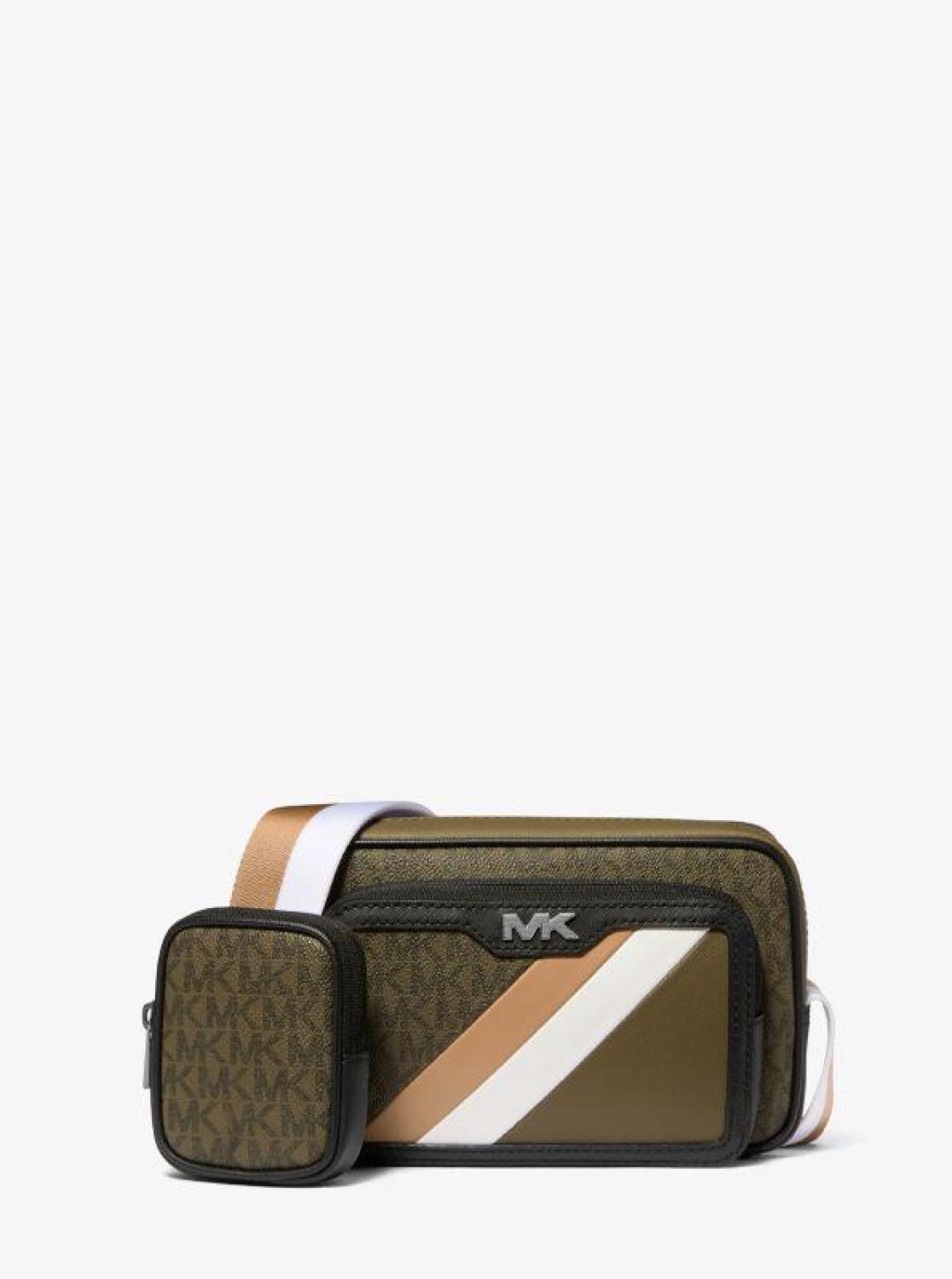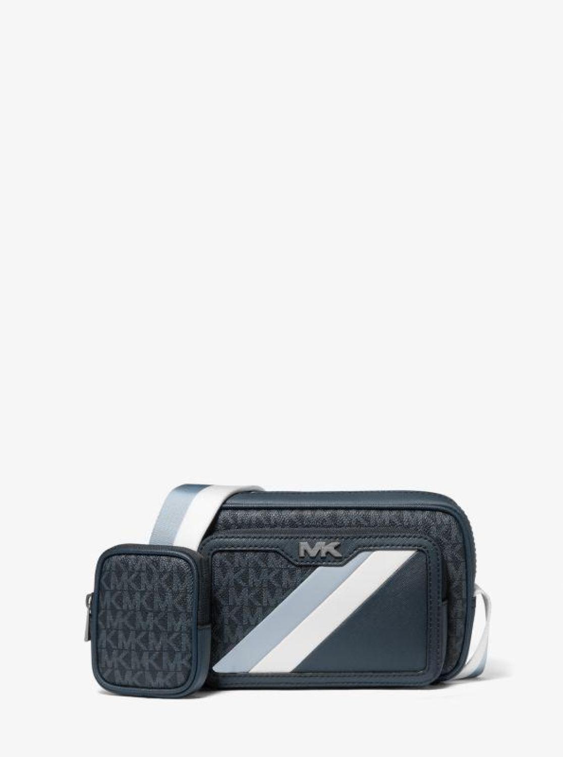 • The Rivington camera bag combines our Signature logo-print canvas with tonal stripes for a graphic look. A front zip pocket and detachable mini pouch keep you organized while on the go.