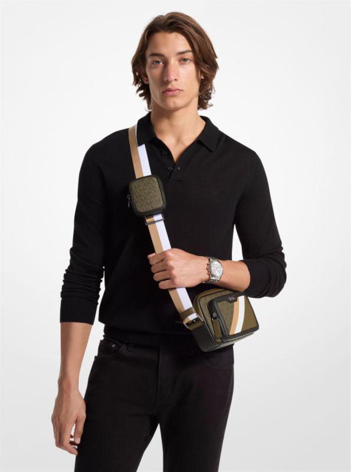 The Rivington camera bag combines our Signature logo-print canvas with tonal stripes for a graphic look. A front zip pocket and detachable mini pouch keep you organized while on the go.