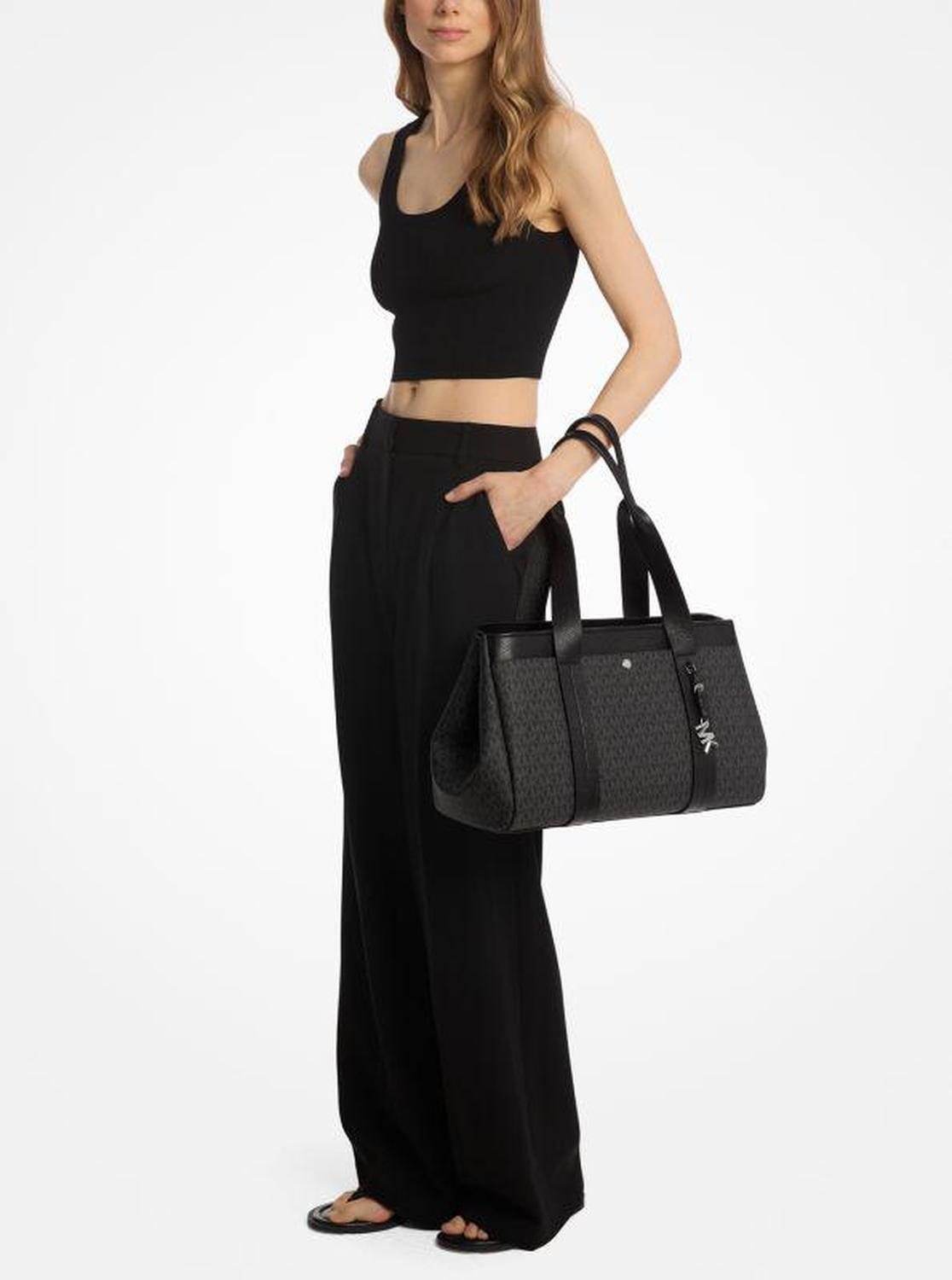Romee Large Signature Logo and Leather Tote Bag