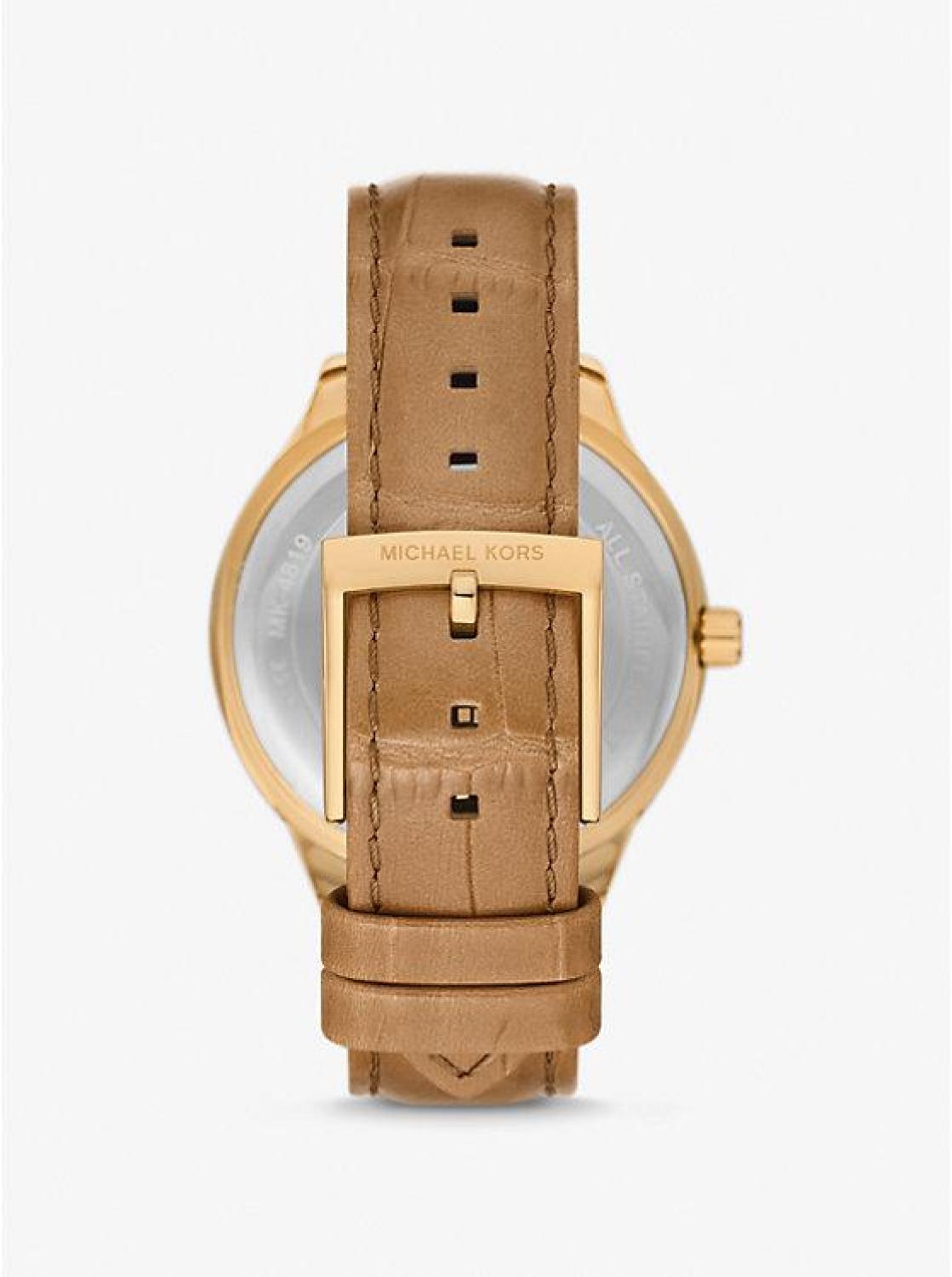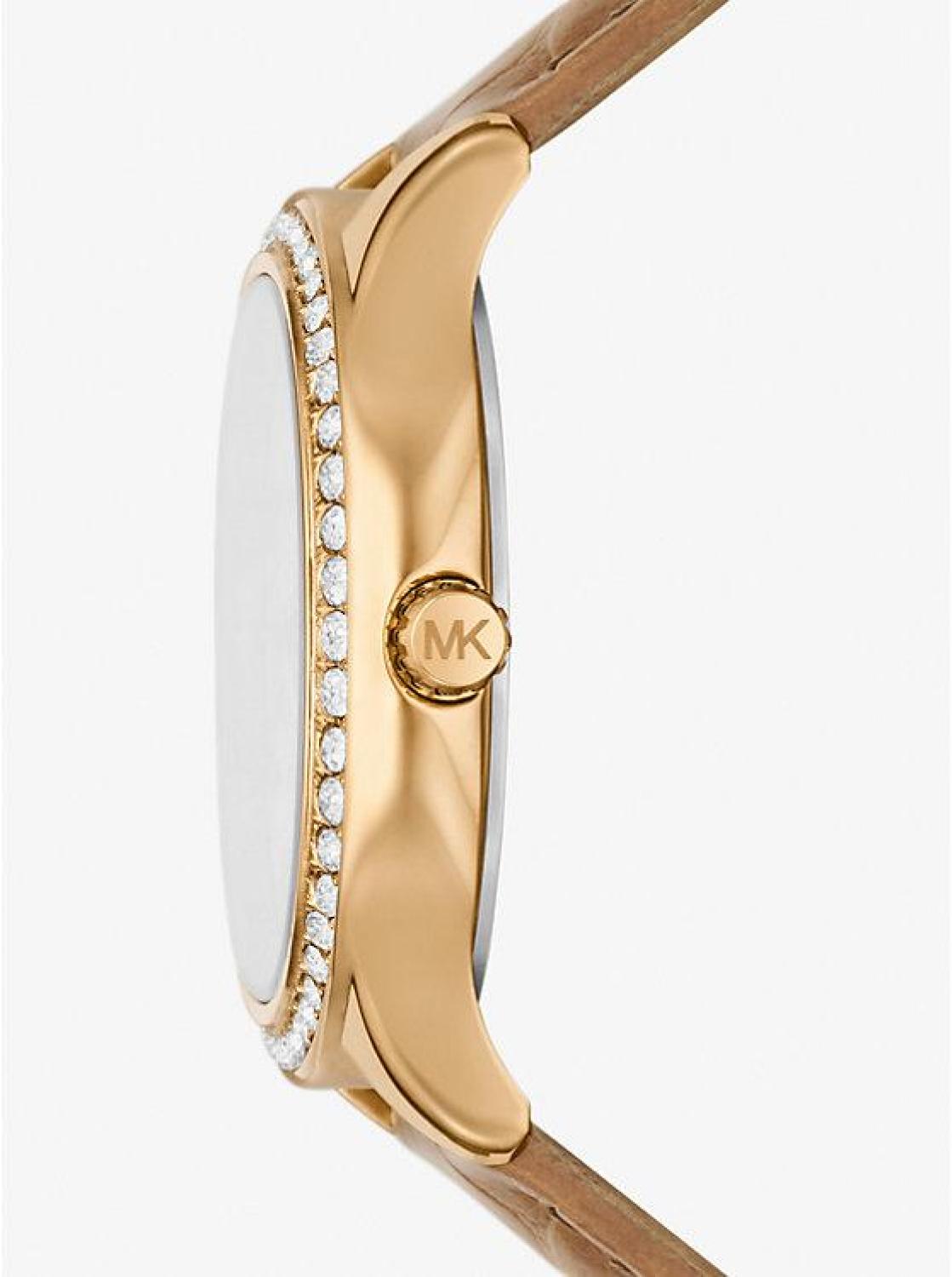 Sage Pavé Gold-Tone and Crocodile Embossed Leather Watch