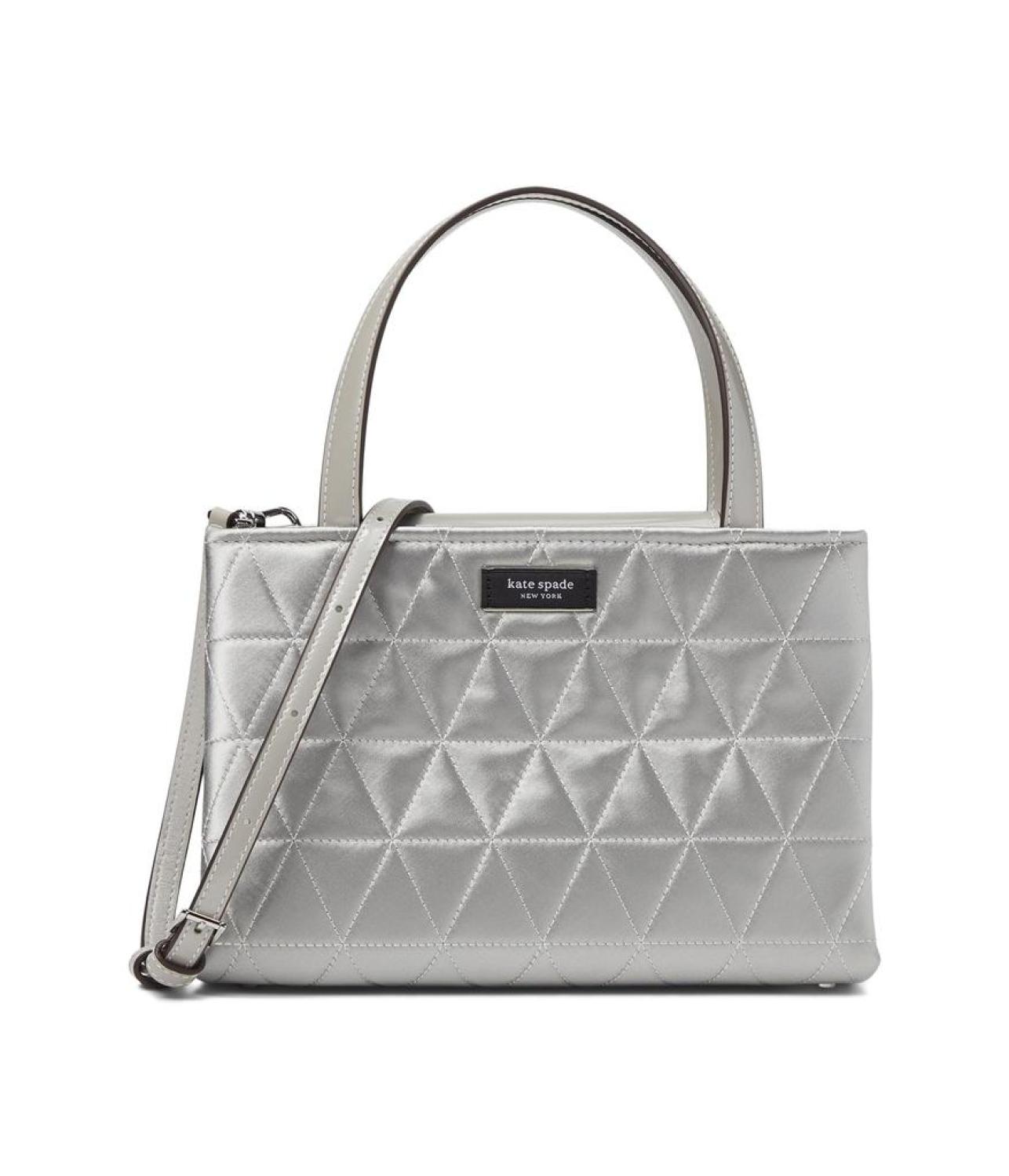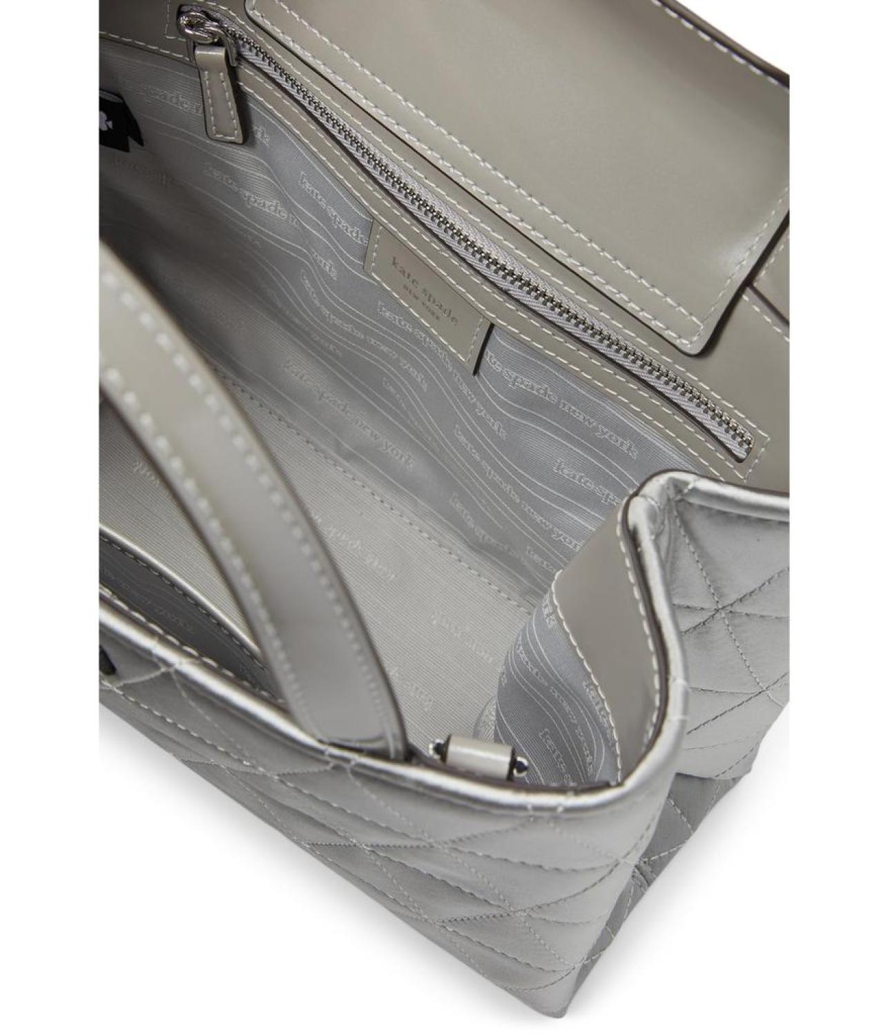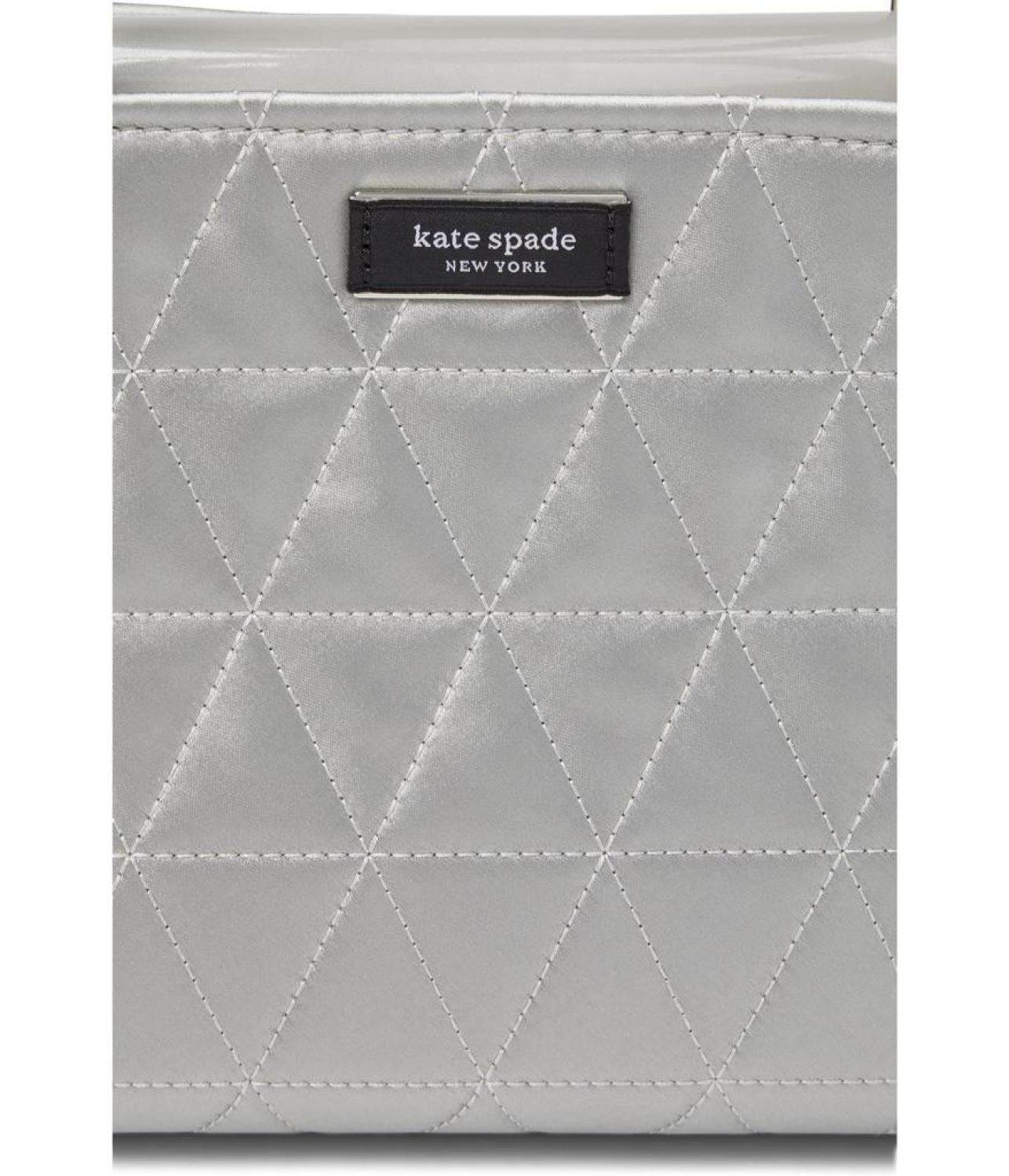 Accessorize your outfits with the chic and fashionable Kate Spade New York® Sam Icon Quilted Satin Small Tote. Featuring a quilted design with stitched detailing all over, this tote bag works for different occasions and outfits. The magnetic tab flap closure of the bag keeps the content inside secure while the adjustable and removable shoulder strap offers versatile styling. Add a glamorous touch to your outfits by carrying this stylish handbag. Satin construction. One main compartment with an interior zippered pocket. Top grab handles. Plaque logo on the front. Textile lining. Imported. Please note, the hardware color and interior lining may differ from the color shown in the photo. Measurements: Bottom Width: 9 1/2 in Depth: 3 1/2 in Height: 6 1/4 in Strap Length: 49 in Strap Drop: 24 in Handle Length: 12 3/4 in Handle Drop: 4 1/2 in Weight: 14 oz