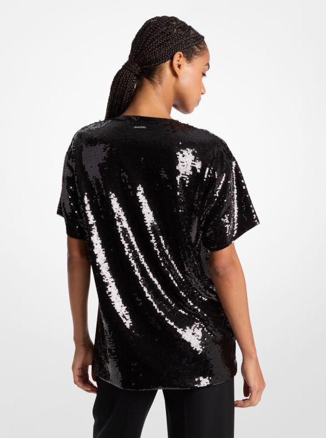 Turn up the shine on your favorite T-shirt. Allover sequins put a luxe spin on this oversized, borrowed-from-the-boys fit. It instantly elevates your favorite jeans. • T-shirt • Jersey • 100% polyester • Lining: 100% polyester • Hand wash • Imported • Model is 5'11"/180 cm wearing size XS • T-shirt • Jersey • 100% polyester • Lining: 100% polyester • Hand wash • Imported • Model is 5'11"/180 cm wearing size XS